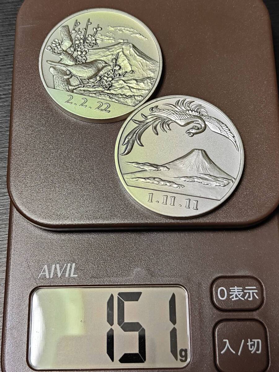 純銀 2枚セット 平成1年1月1日 平成2年2月2日 記念メダル 計約151g