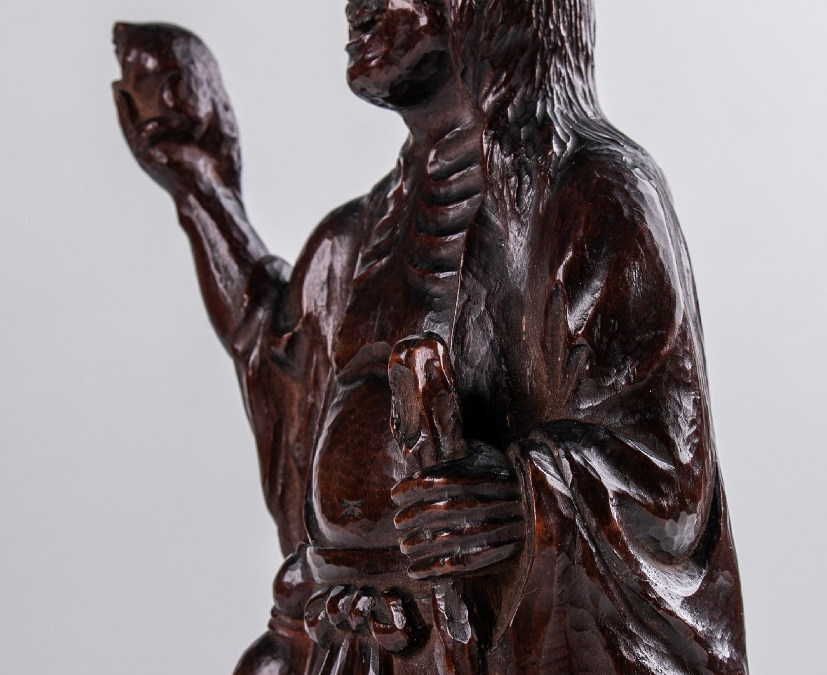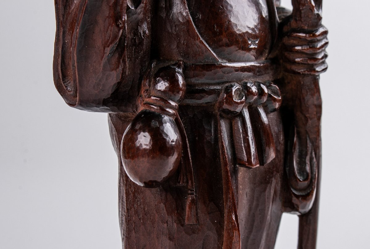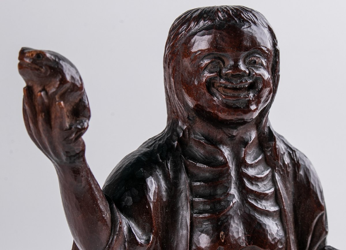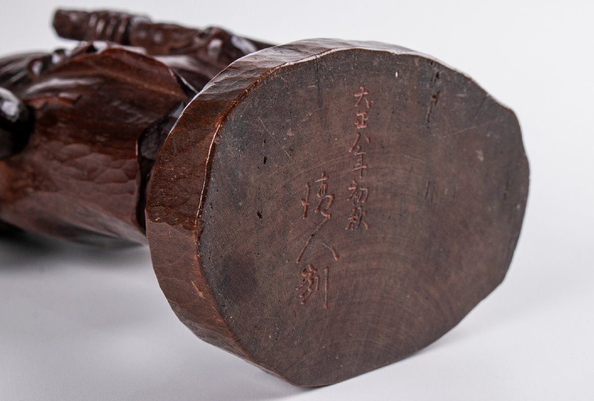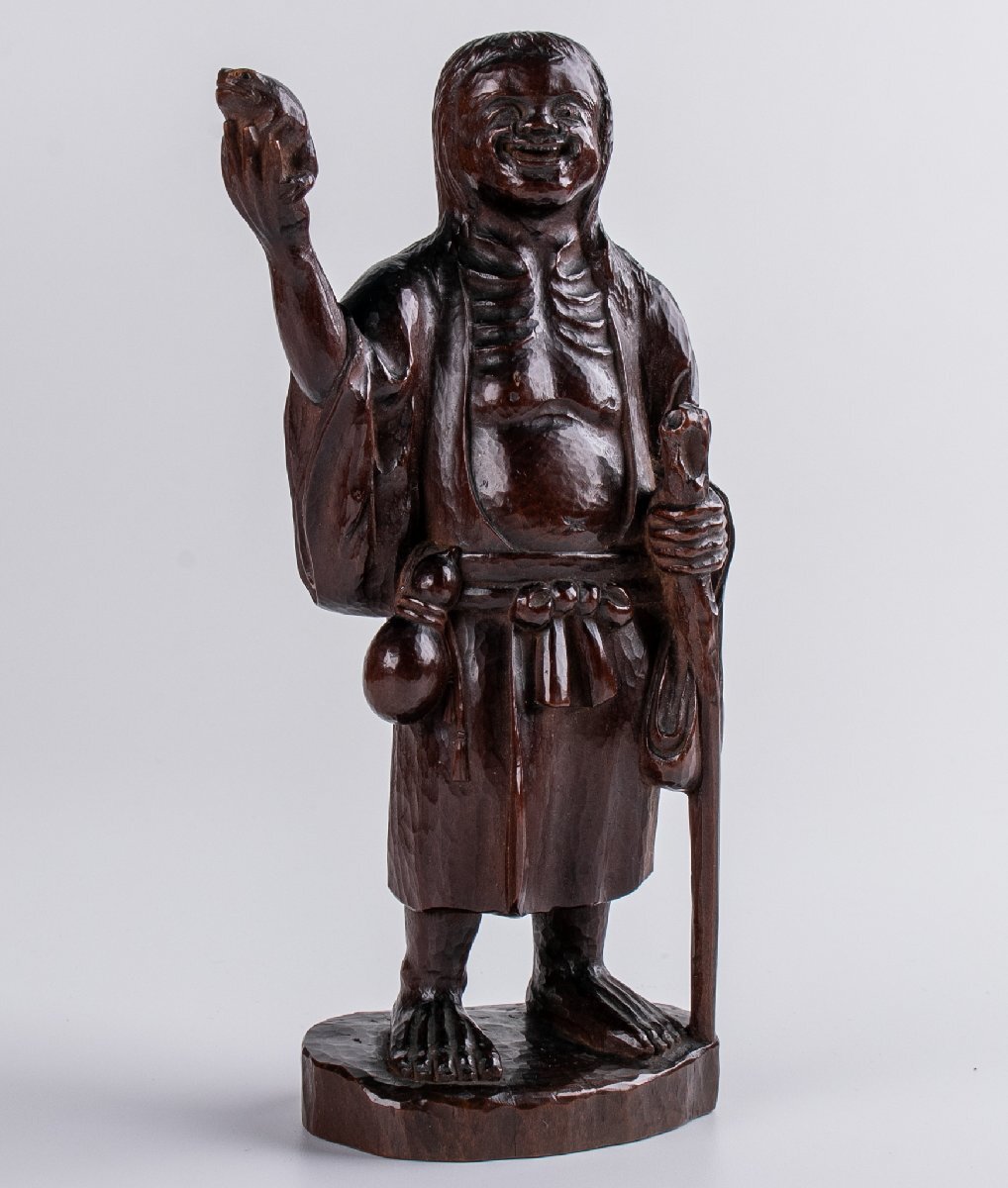 【うつわ】 一木造 ガマ仙人 大正八年 箱付 F096 古美術 骨董 古玩 茶道具 日本料理 料亭 懐石