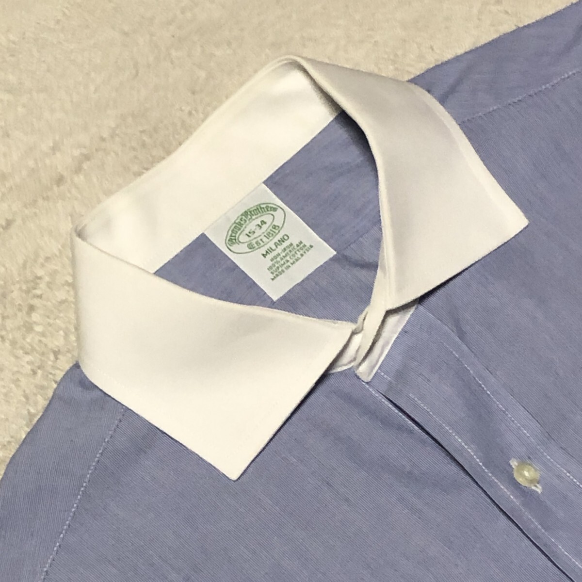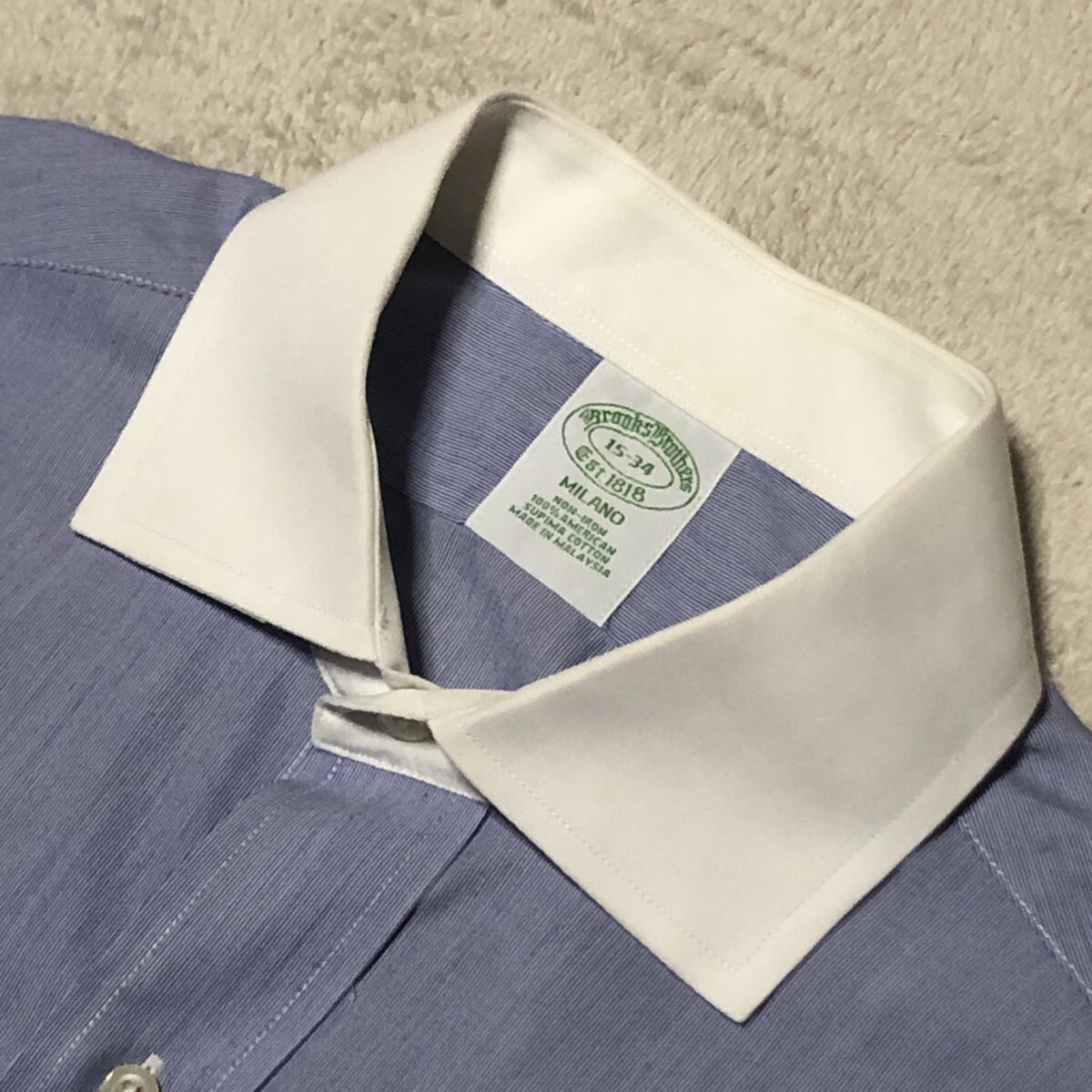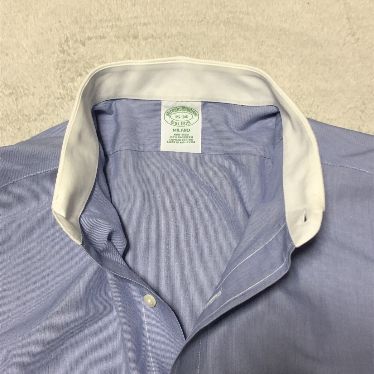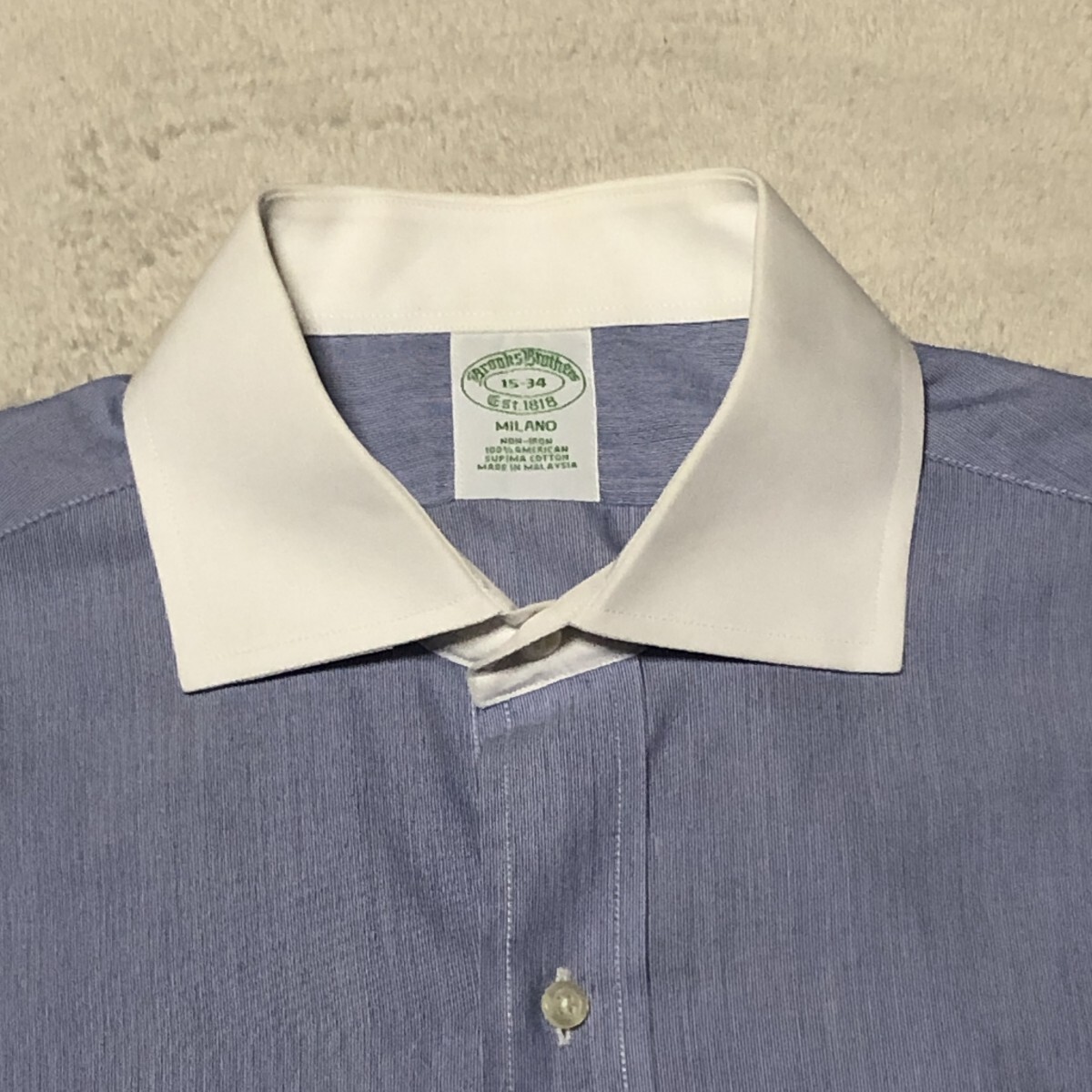 Brooks Brothers ブルックスブラザーズ 長袖シャツ ドレスシャツ 襟切り替え ブルー系 MILANO 15-34サイズ Mサイズ相当