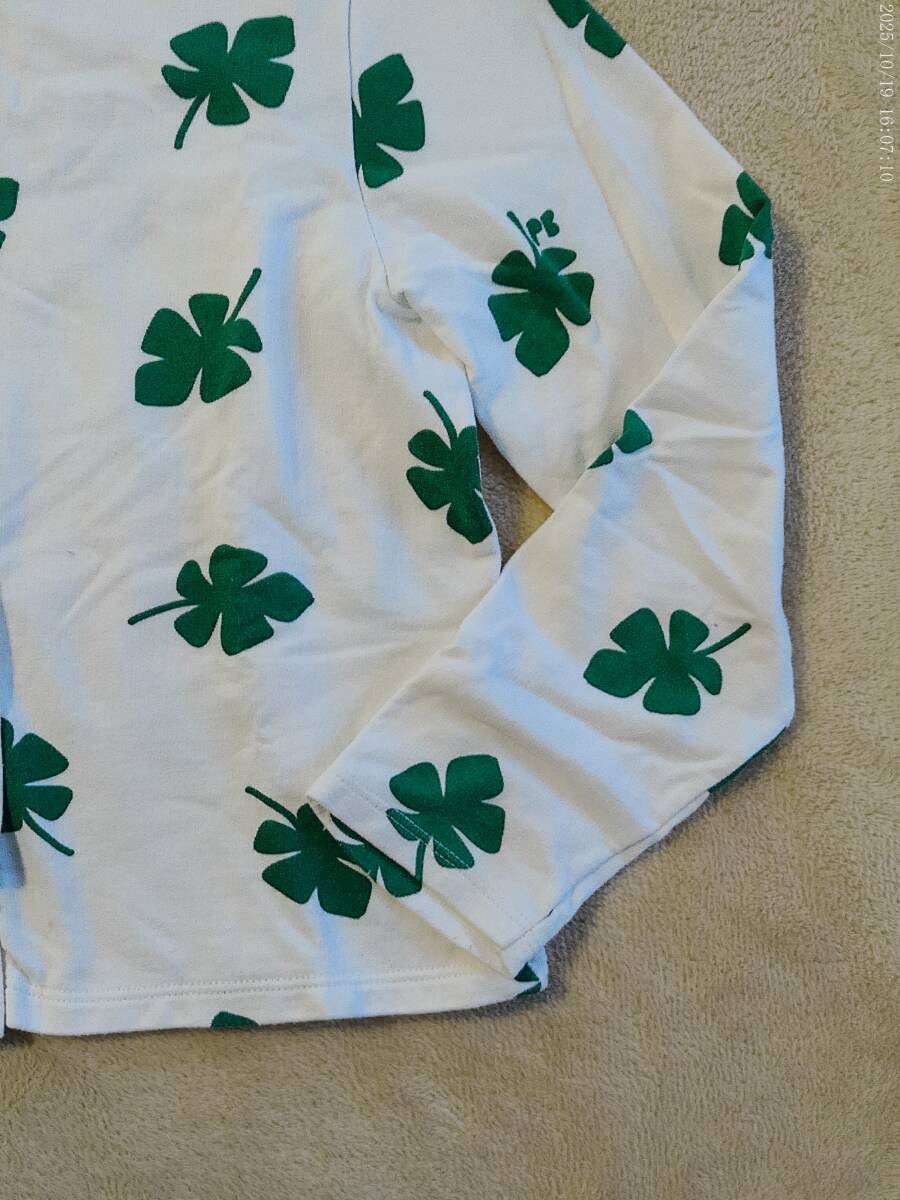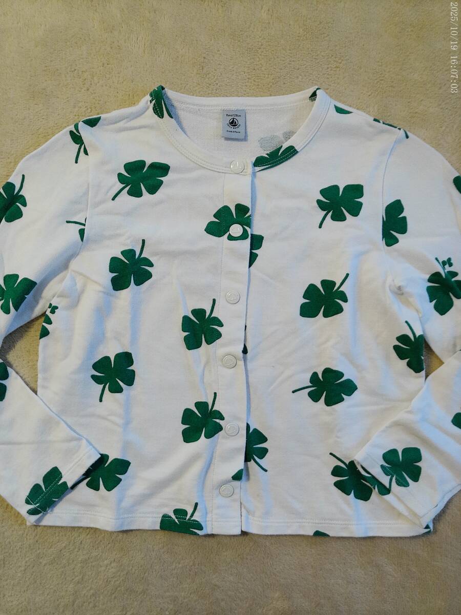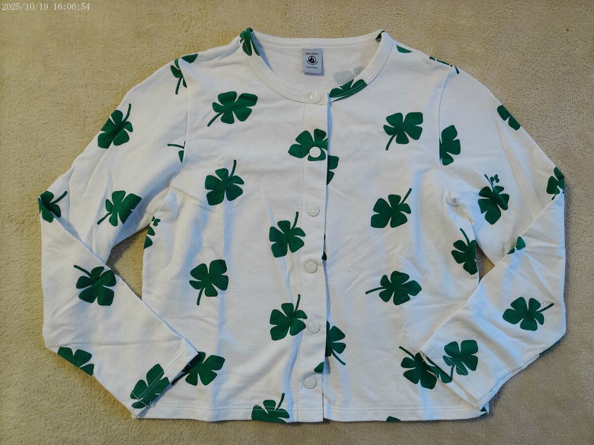 ■プチバトー■サイズ8歳■128cm■コットンカーディガン■白地にグリーンの四つ葉のクローバー■