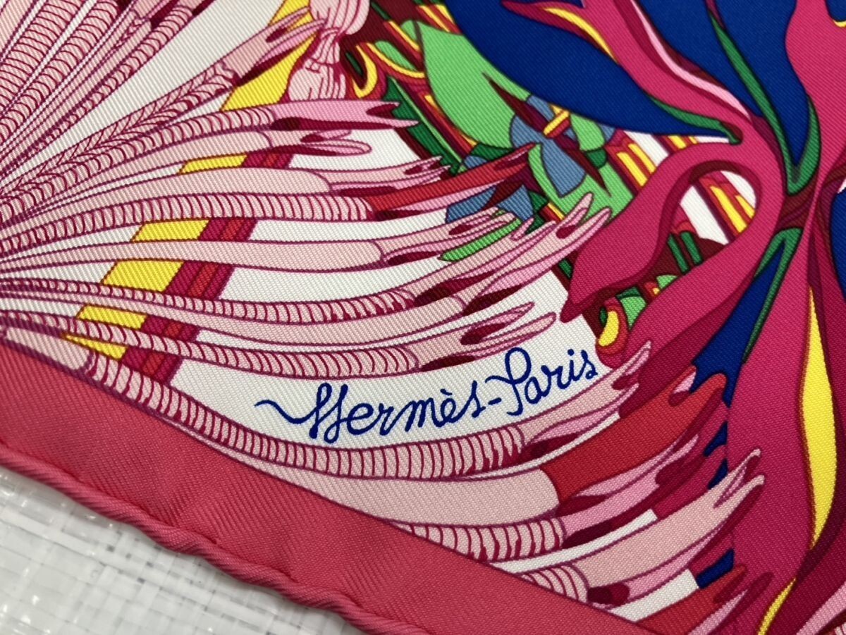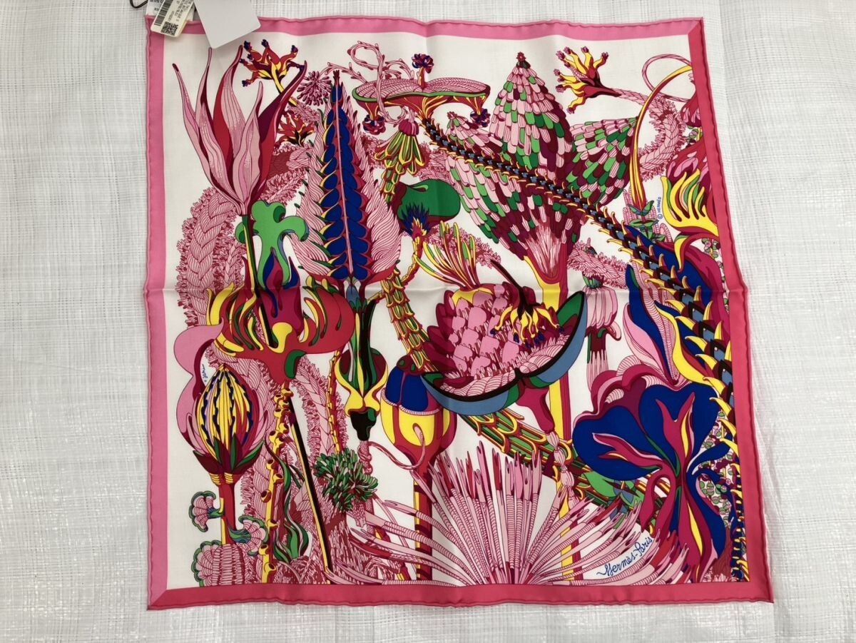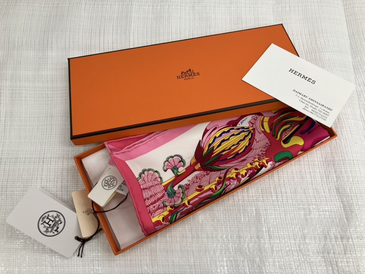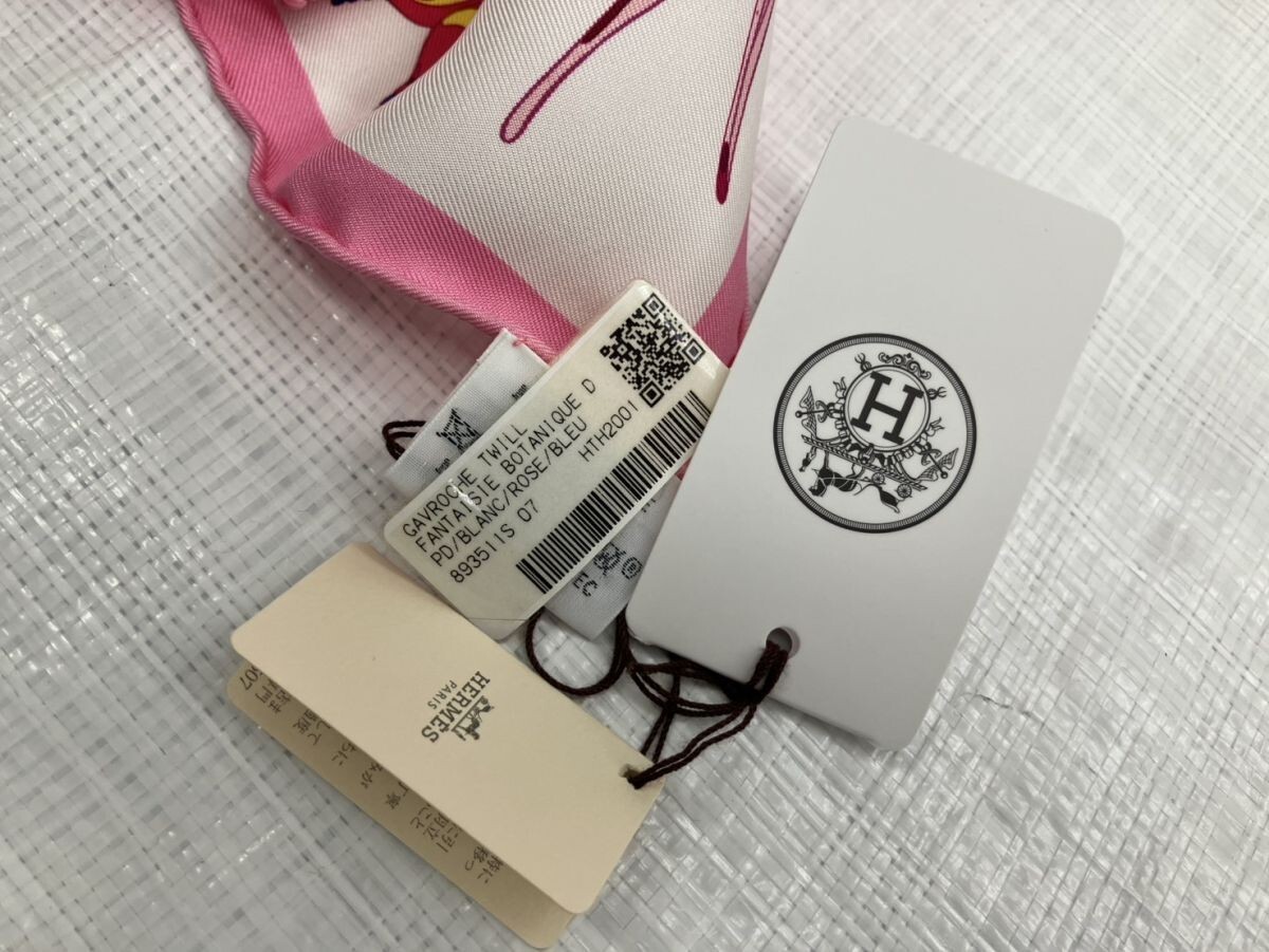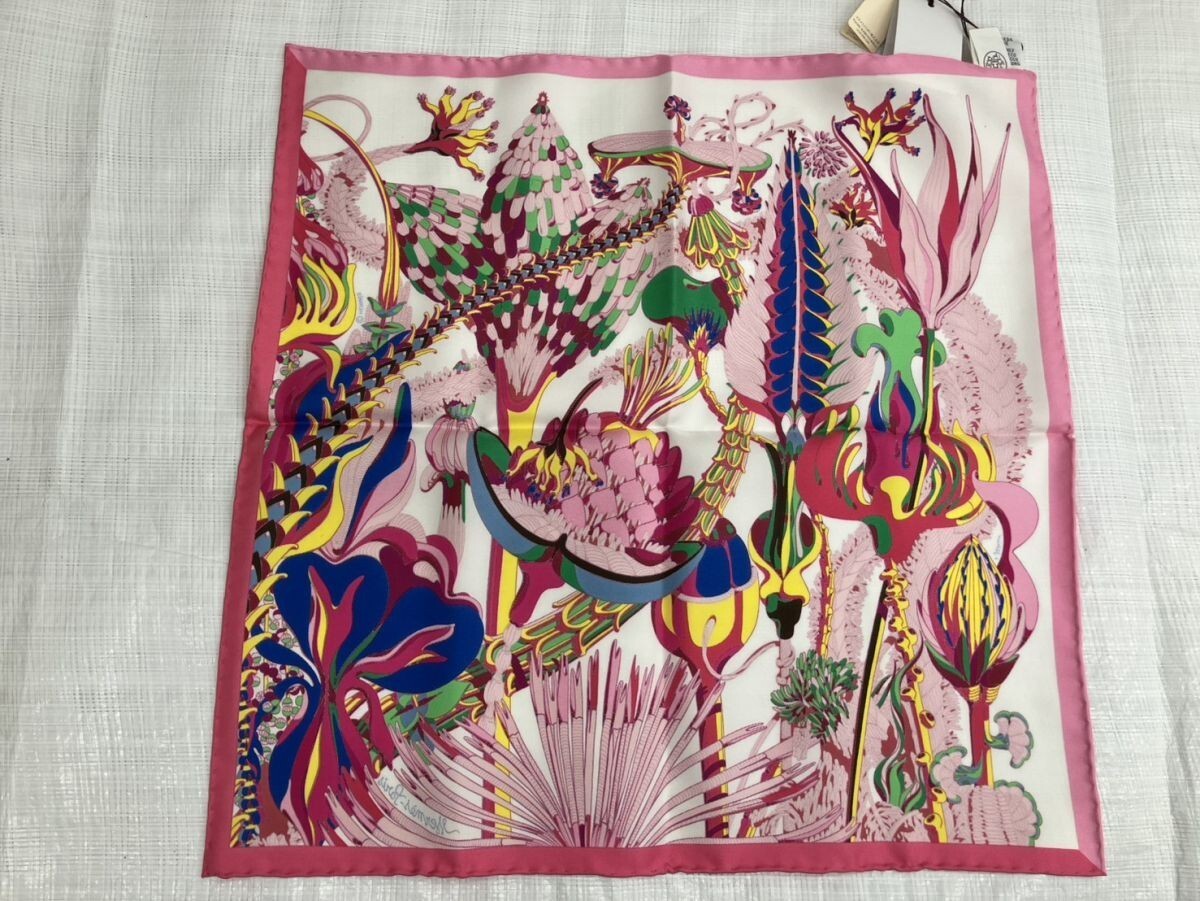 E734-W12-785 【未使用】HERMES エルメス GAVROCHE FANTASIE BOTANIQUE ハンカチ ミニスカーフ 約41×41㎝ 箱付き IL