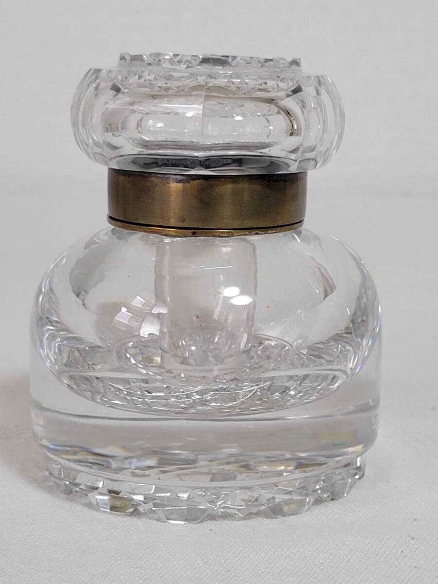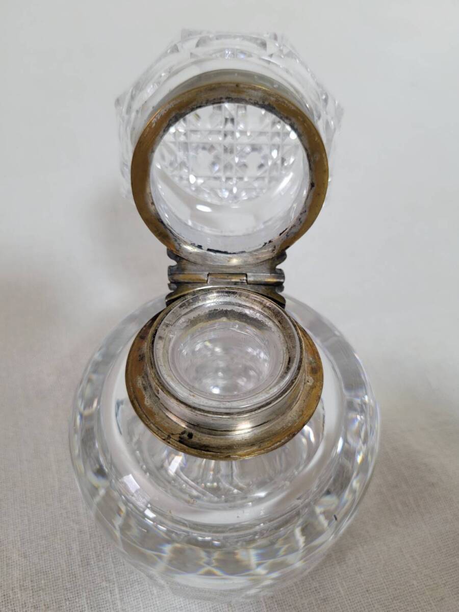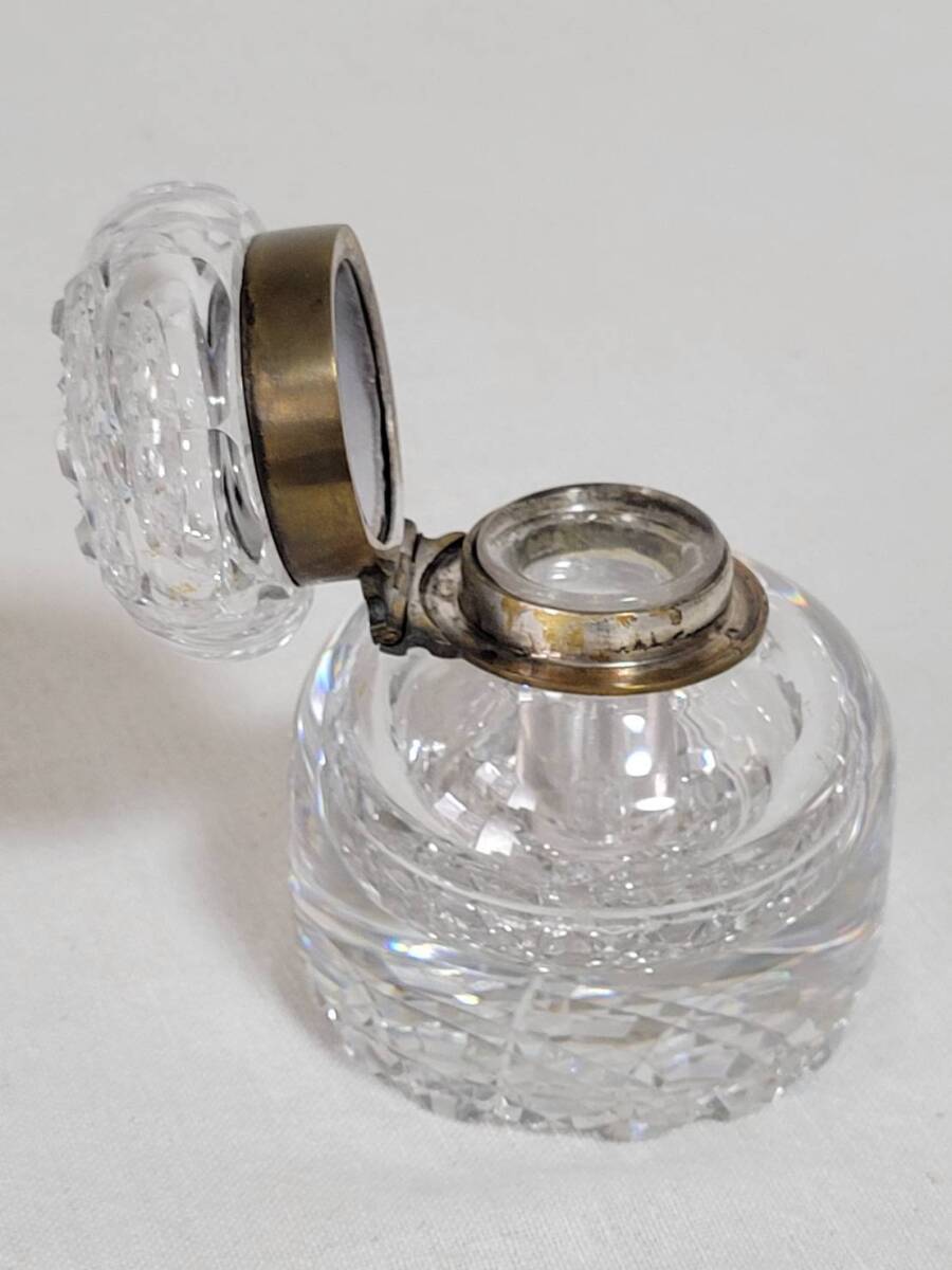 #ペンスタンド #ペントレー #インクウェル&ペンスタンド #インクボトル&ペンスタンド #インクボトル #インクスタンド #カットクリスタルガラス #ペンホルダースタンド #上質クリスタル #アンティーク #象牙調工芸品 #チーク材工芸品 #クリスタルガラス工芸品 #ガラス工芸品