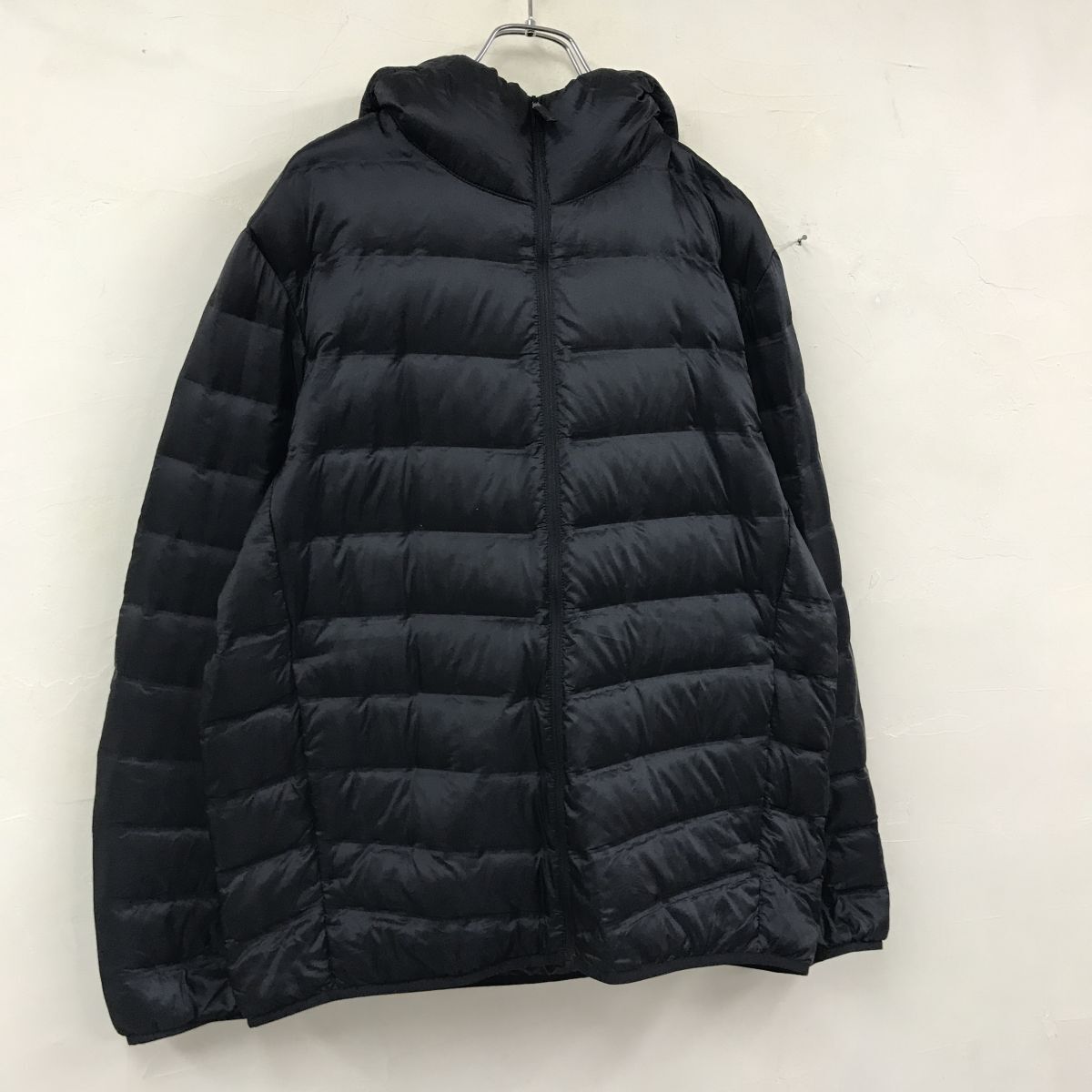 2O-3213-T-N◆UNIQLO ユニクロ ダウンジャケット フード 無地 ロングスリーブ◆sizeXL ブラック メンズ トップス ナイロン100