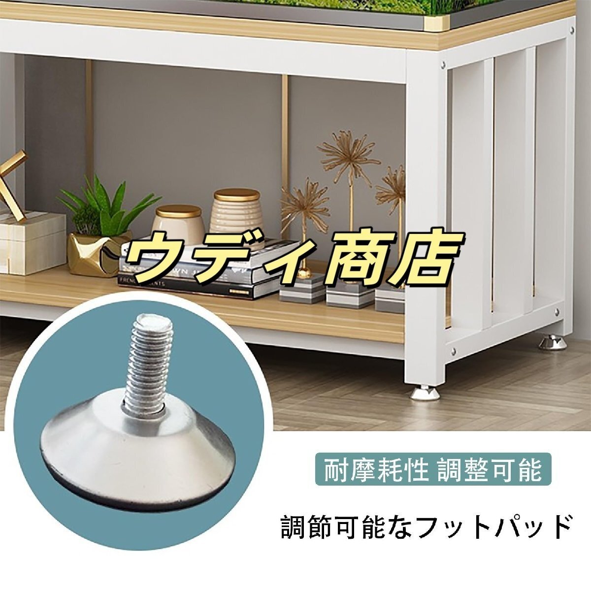 丈夫な素材、安定した耐荷重:水槽テーブルは厚い環境に優しいパネルと厚い金属鋼フレームで作られており、防水性、防錆性、耐腐食性があり、強力な耐荷重性があり、変形しにくいです。底部の 4 つの調整可能な滑り止めパッドは、不安定な地面のバランスを保つだけでなく、静音性、耐摩耗性、床の保護にも優れ、水槽を安全かつ安定して設置できます。