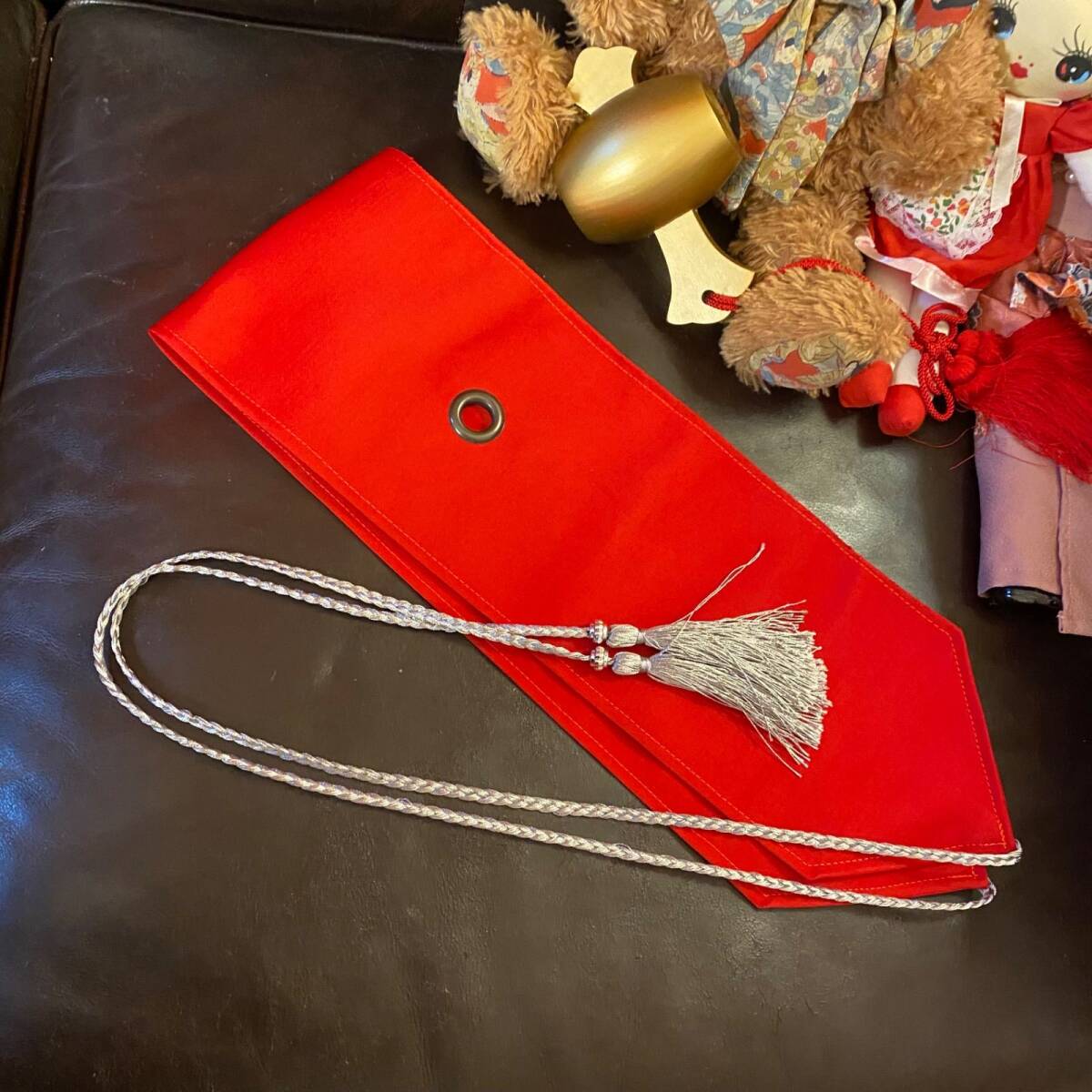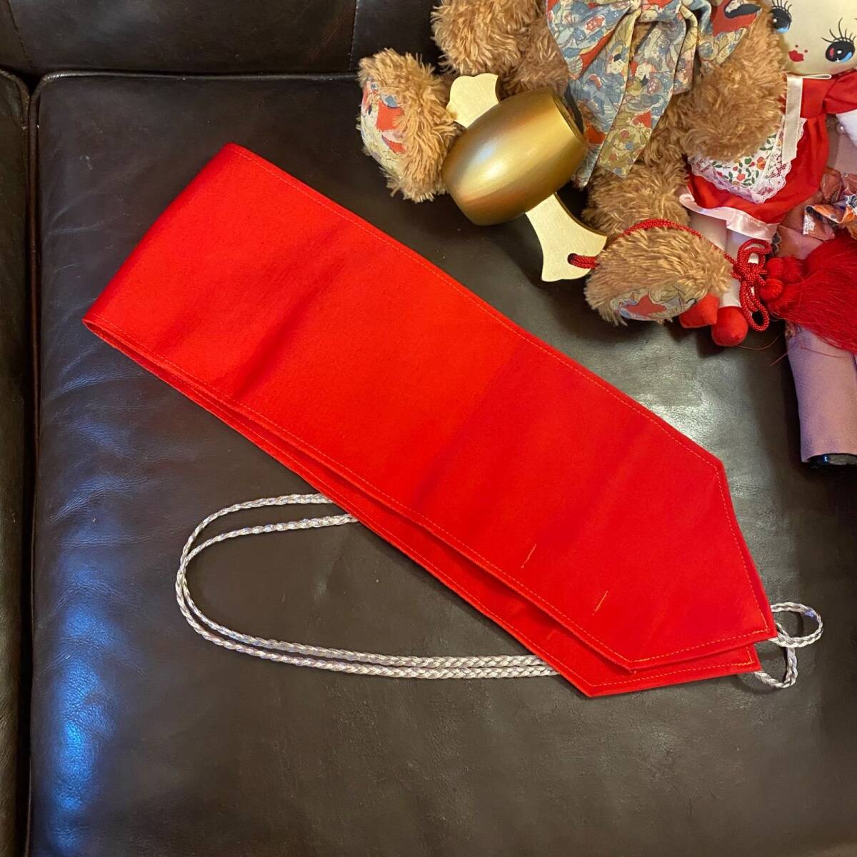 赤の帯ベルトはウエストマークとしてスタイルアップ効果も◎