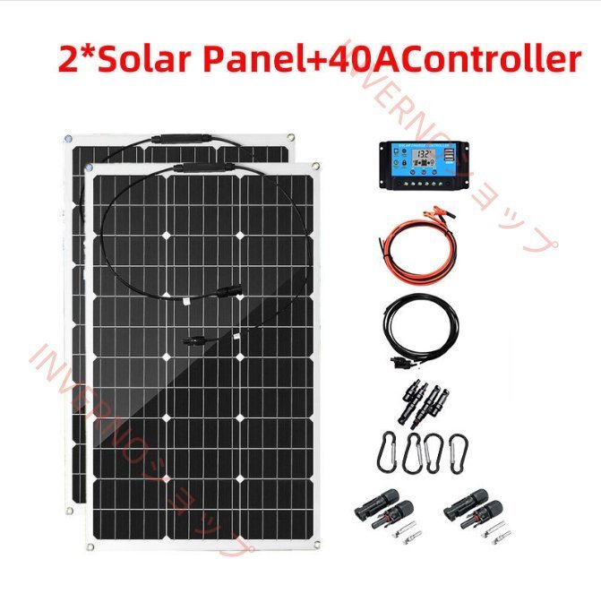 400W 12v/18vポータブルソーラーパネルモジュールキット、コントローラー40A付き 2×200Wフレキシブルソーラーパネル(A400)