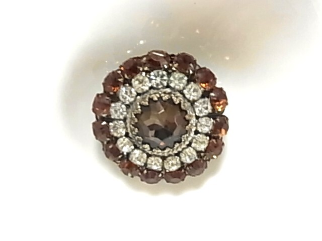 ビンテージ/ヴィンテージ キラキラ系 イミテガーネットトーンとクリアのラインストーンが輝くビジュー 輝石昭和レトロの素敵ブローチ♯