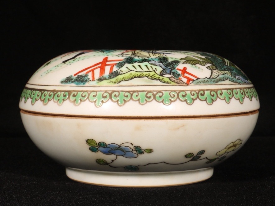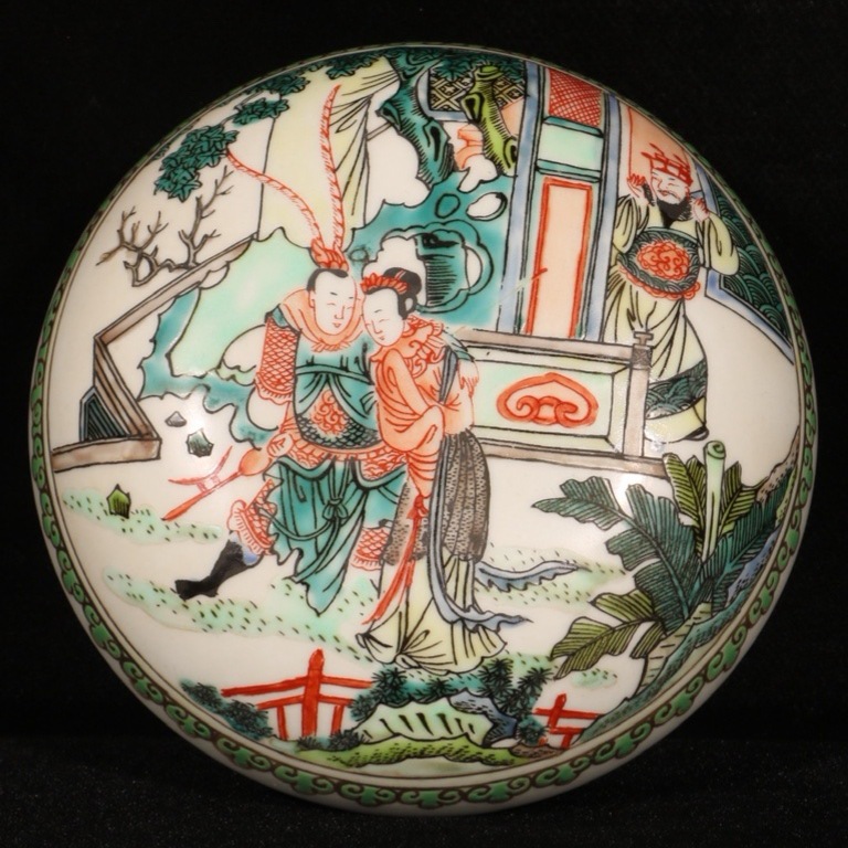 唐物 清 乾隆年製 五彩人物故事紋 粉盒 陶芸 古陶磁器 中国磁器 極細工 中国古玩 骨董品 古美味 D611