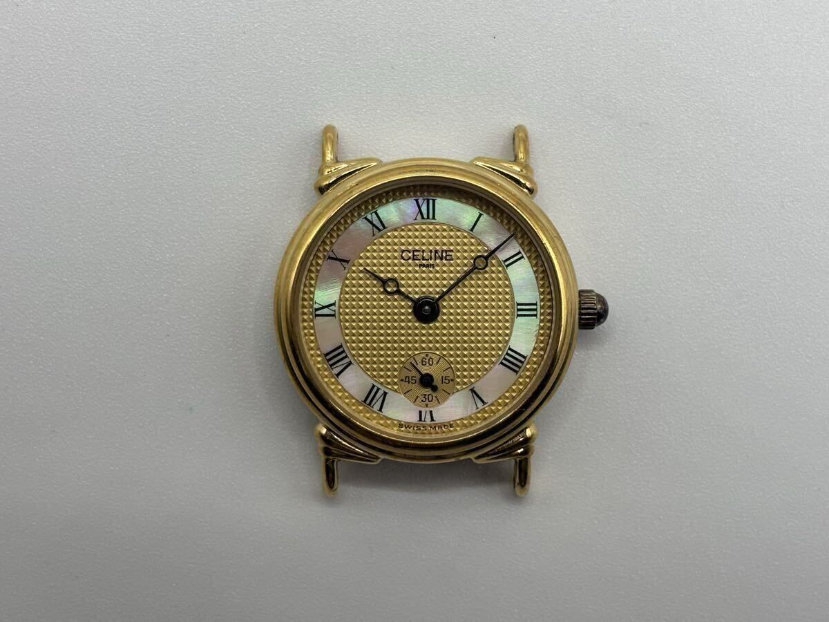| CELINE セリーヌ D2903-3 レディース腕時計 ウォッチ ゴールド文字盤 クォーツ スモセコ ローマン 不動 フェイスのみ 現状品 | ||||||||||||||||||||