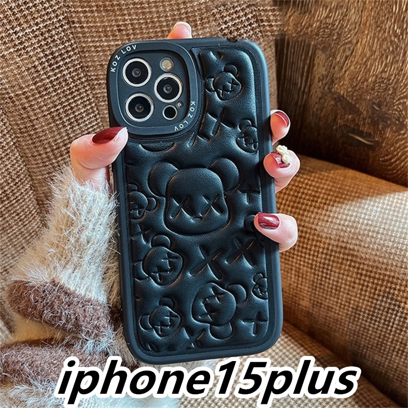 iphone15plusケース カーバー TPU 可愛い お洒落 熊 軽量 ケース ブラック1