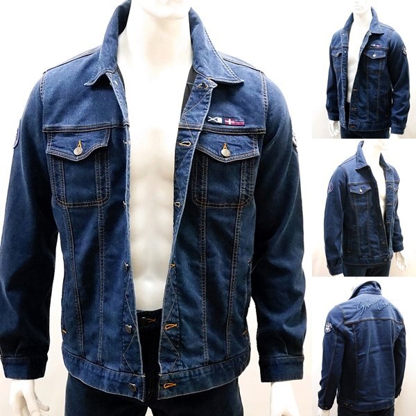 配置されたアイコンがアクセントとなったデニムジャケット。