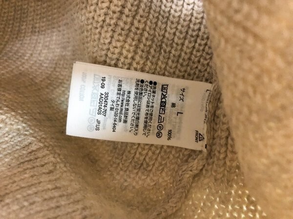 良品計画 無印良品 メンズ ラグランスリーブ コットンリブニットソー L ライトベージュ コットン