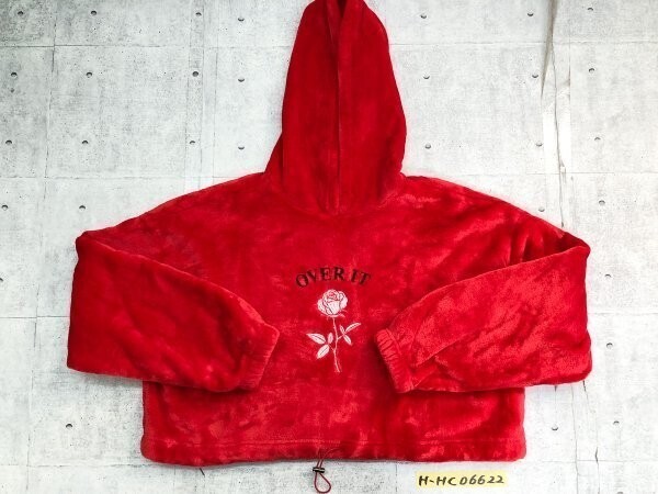 FOREVER21 フォーエバートゥエンティーワン バラ刺繍入り ショート丈 クロップド丈 ボア フーディー パーカー S