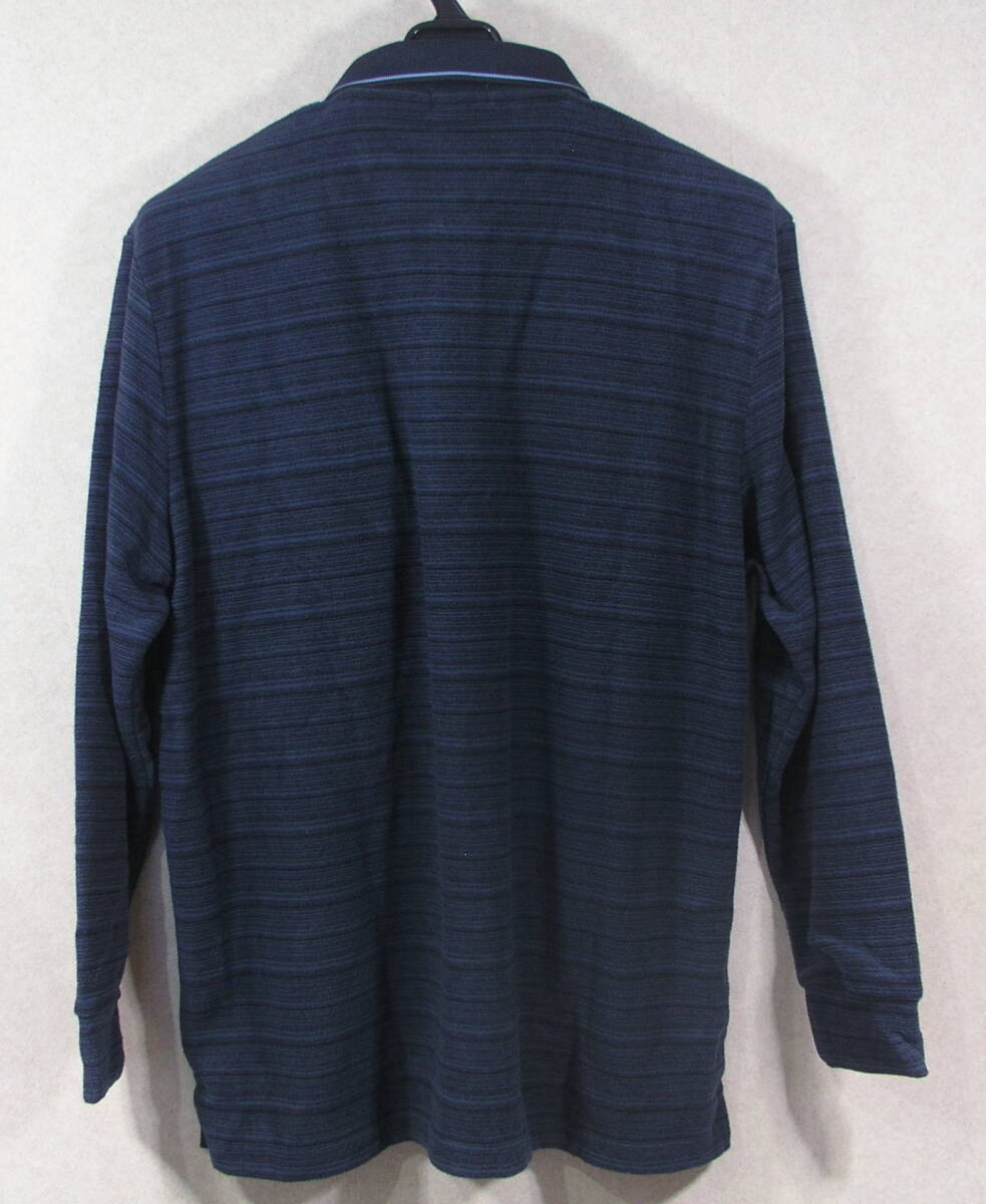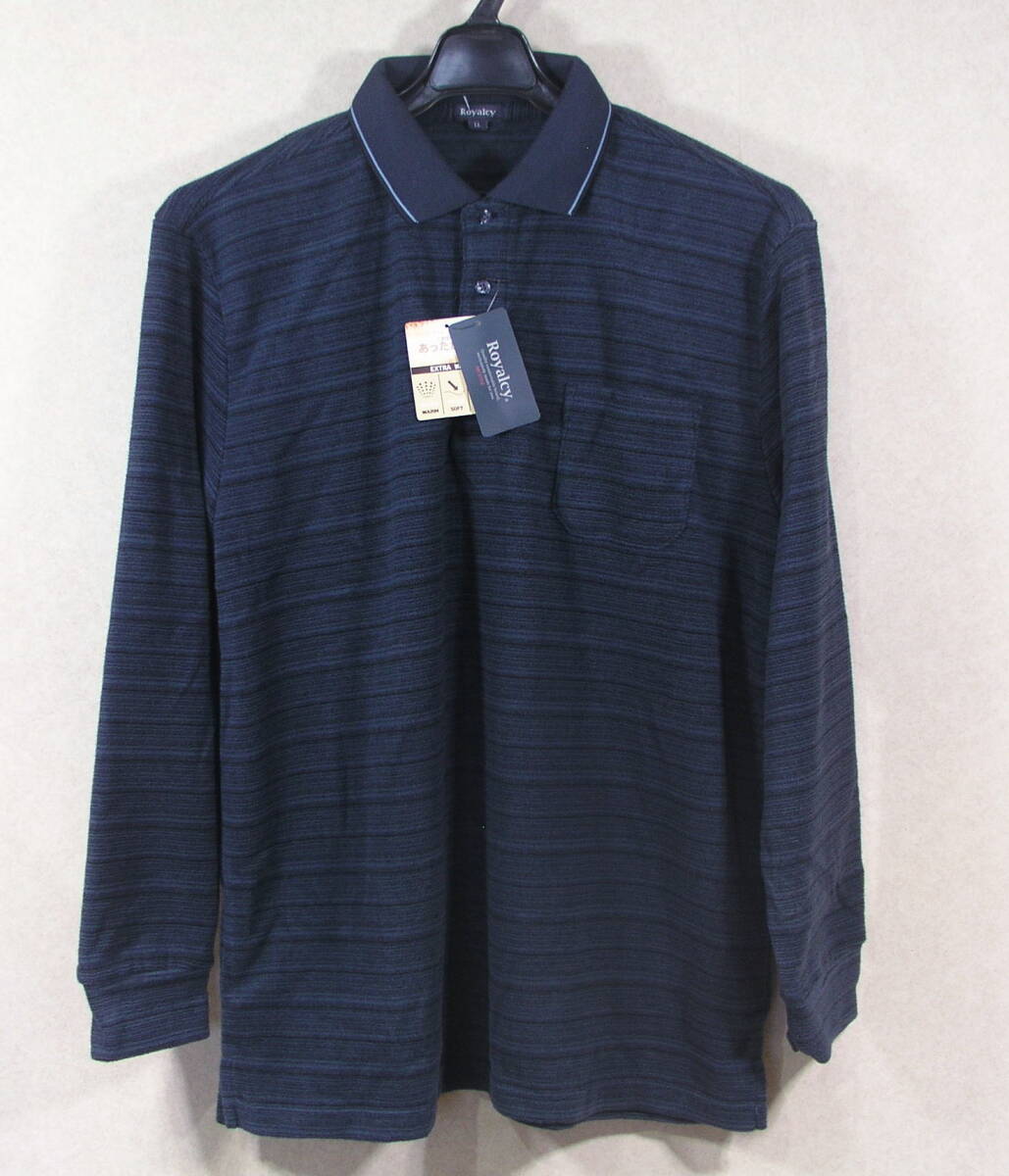 ROYALCY カチオンボーダー柄ネイビー フリース生地裏起毛ポロシャツ 暖かい LLサイズ 送料無料