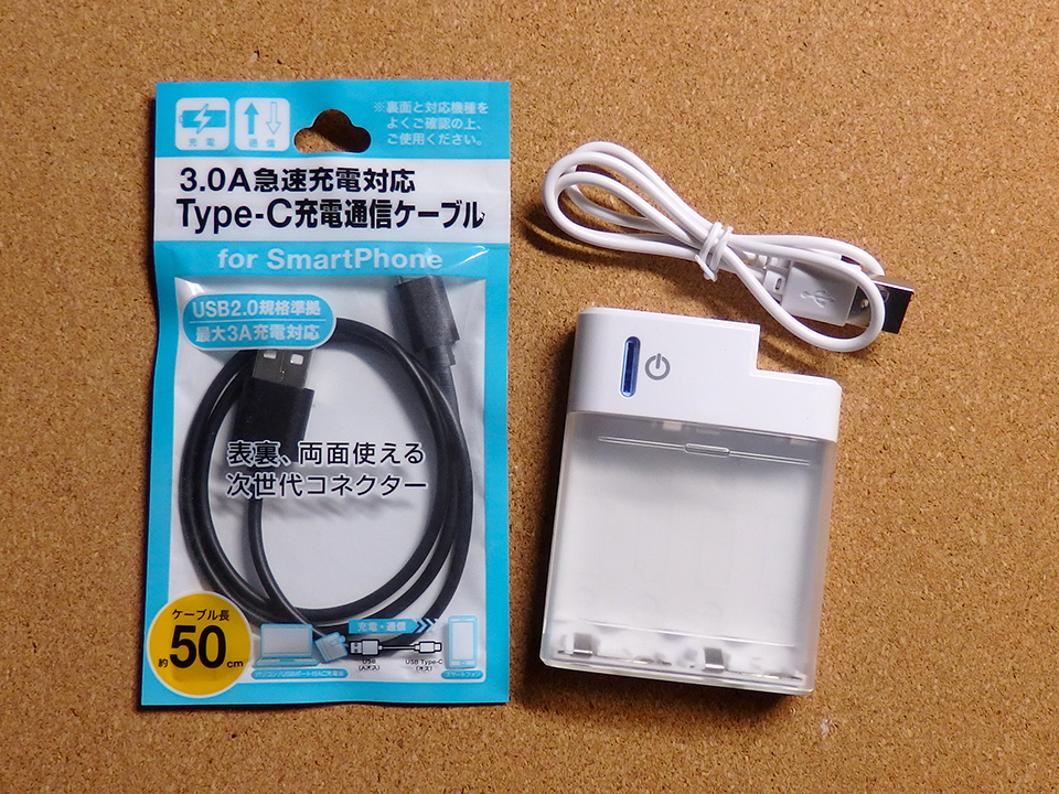 [中古品] 乾電池式USB充電器+USB充電ケーブル2本セット