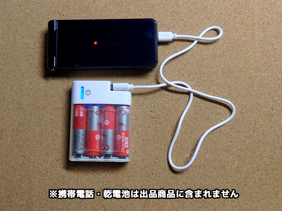 乾電池式USB充電器とUSB充電ケーブル2本(microUSB/Type-C)のセットです。出品にあたって携帯電話の充電が出来ることを確認しています(商品写真4枚目参照/単三乾電池と携帯電話は出品商品に含まれません)。保証無しの中古品となりますのでご理解いただけない場合は入札をご遠慮ください。返品・返金は受け付けておりません。
