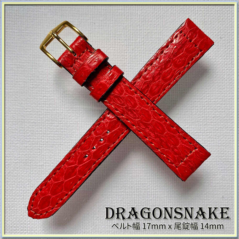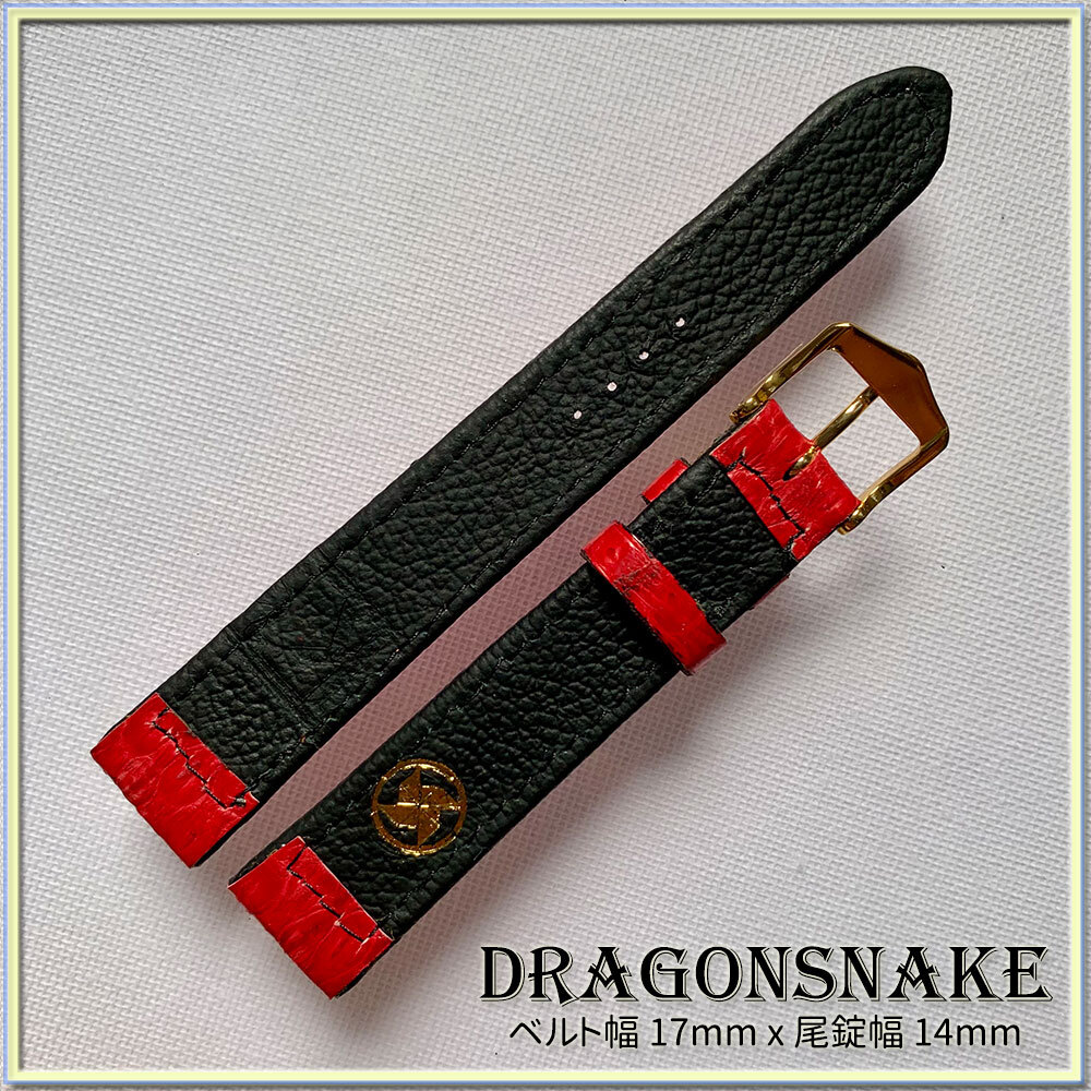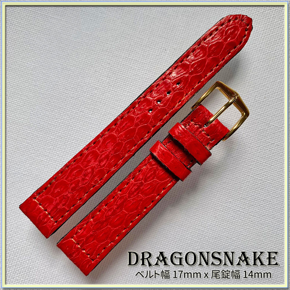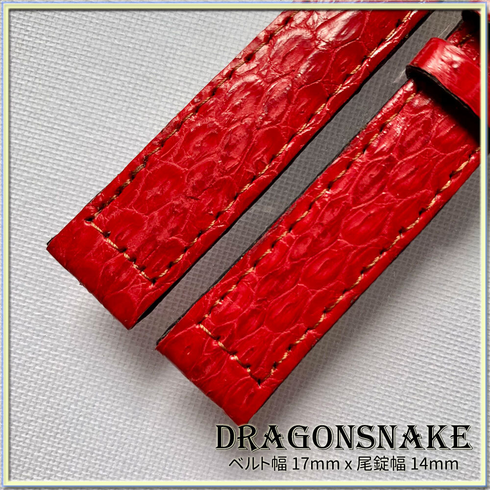 17mm 本革 ドラゴンスネイク ヘビ革 1点物 時計ベルト 別注 イタリアンレッド ITALIAN RED CLASSIC GOLD BUCKLE 職人技 限定 刻印