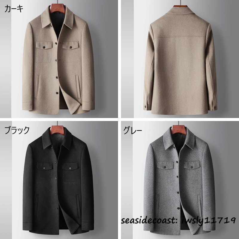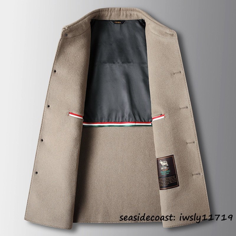 超希少★メンズコート カシミヤ ウールコート ビジネスコート テーラードジャケット 新品*WOOL ロングコート 紳士 アウター カーキ M