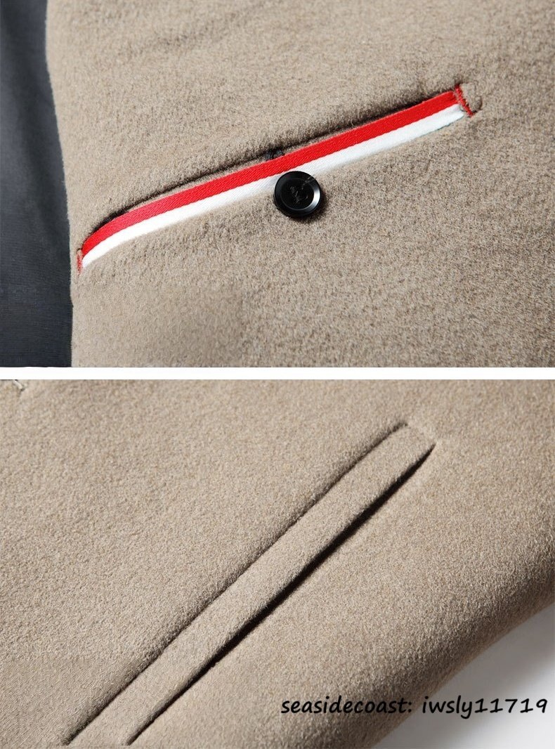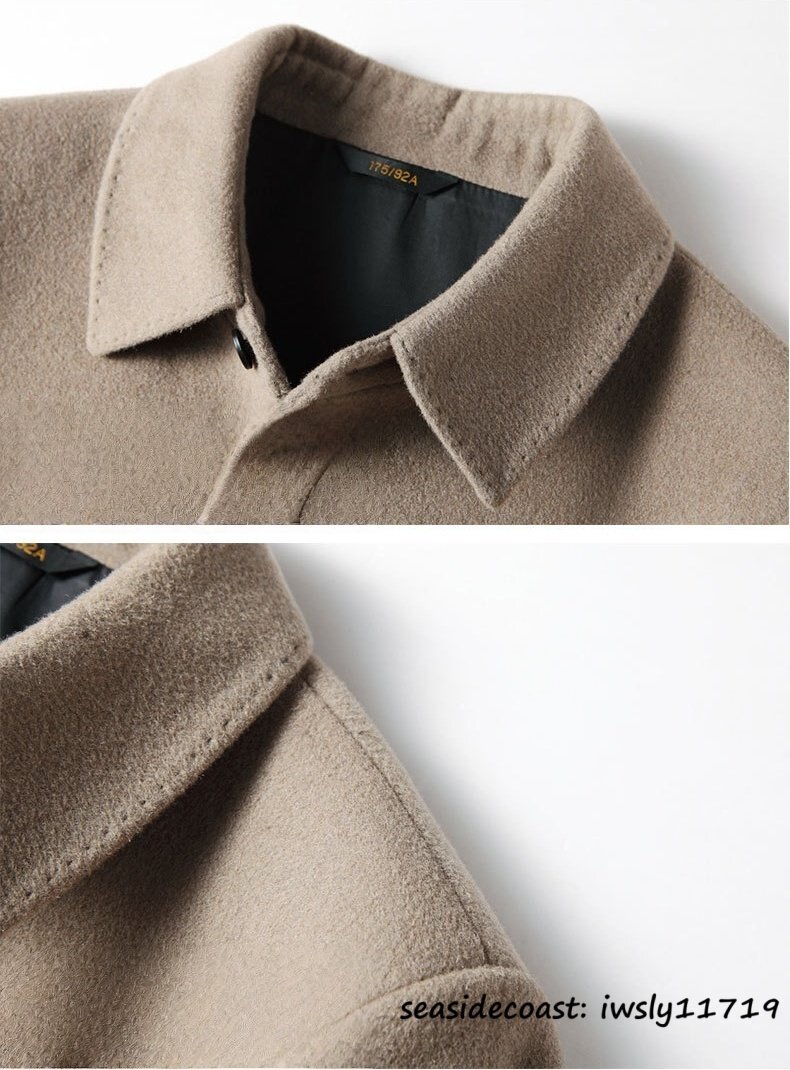 超希少★メンズコート カシミヤ ウールコート ビジネスコート テーラードジャケット 新品*WOOL ロングコート 紳士 アウター カーキ M