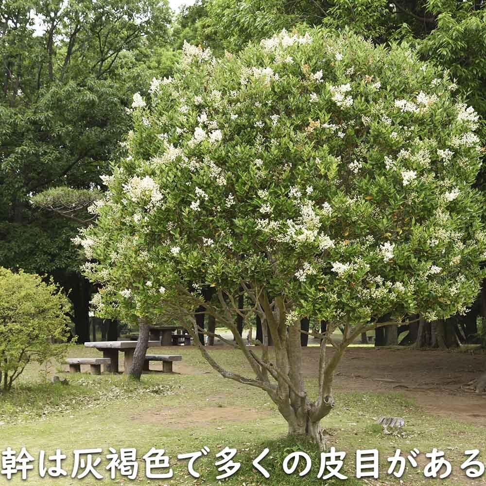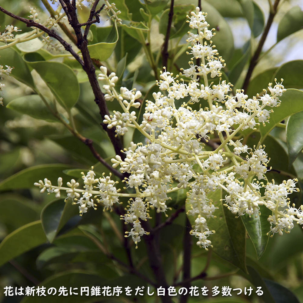 ネズミモチはよく生垣に使われます。昔から人気がある品種です。マサキに似ていますが、ネズミモチは葉のギザギザがありません。初夏に白い花が咲きます。晩秋に黒紫色の小さな実がつきます。樹勢が強く成長が早いので刈り込み枝を密にする事ができます。
