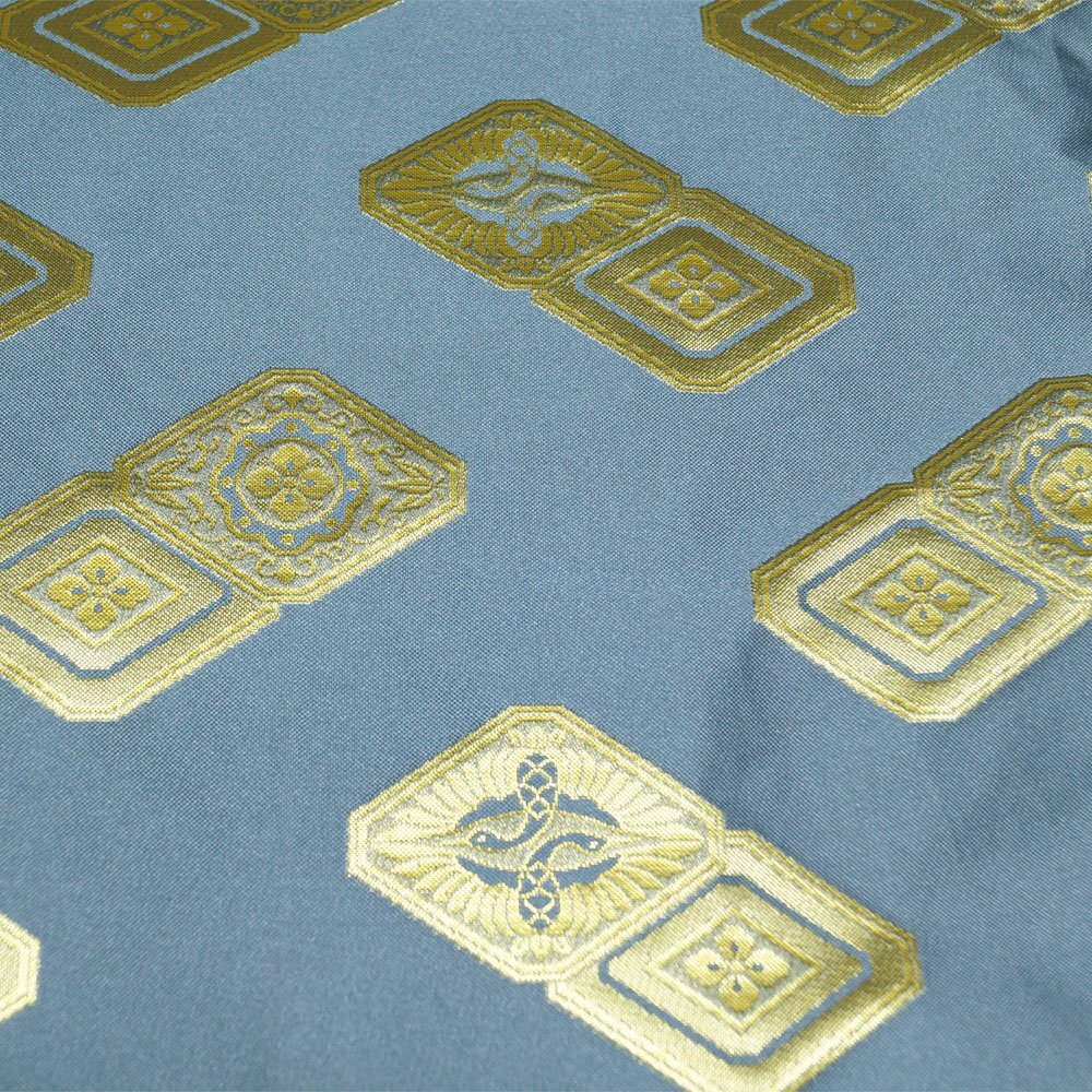 | 商品 説明 | 落ち着いたヒヤシンスブルー色系の地に金糸の花菱や向かい鶴紋などの模様が施された踊り用の金襴袴です。腰板にストッパー(ベロ)も付いております。馬乗り袴(ズボンタイプ、股有り)となります。 |