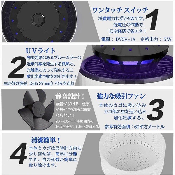 | 蚊取り器 UV光源吸引式捕虫器 ホワイト |