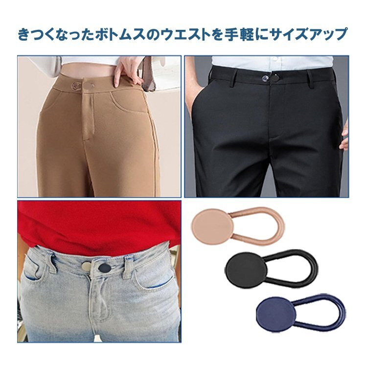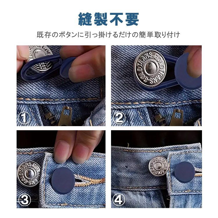 既存のボタンに引っ掛けるだけでウエストを延長することができ、