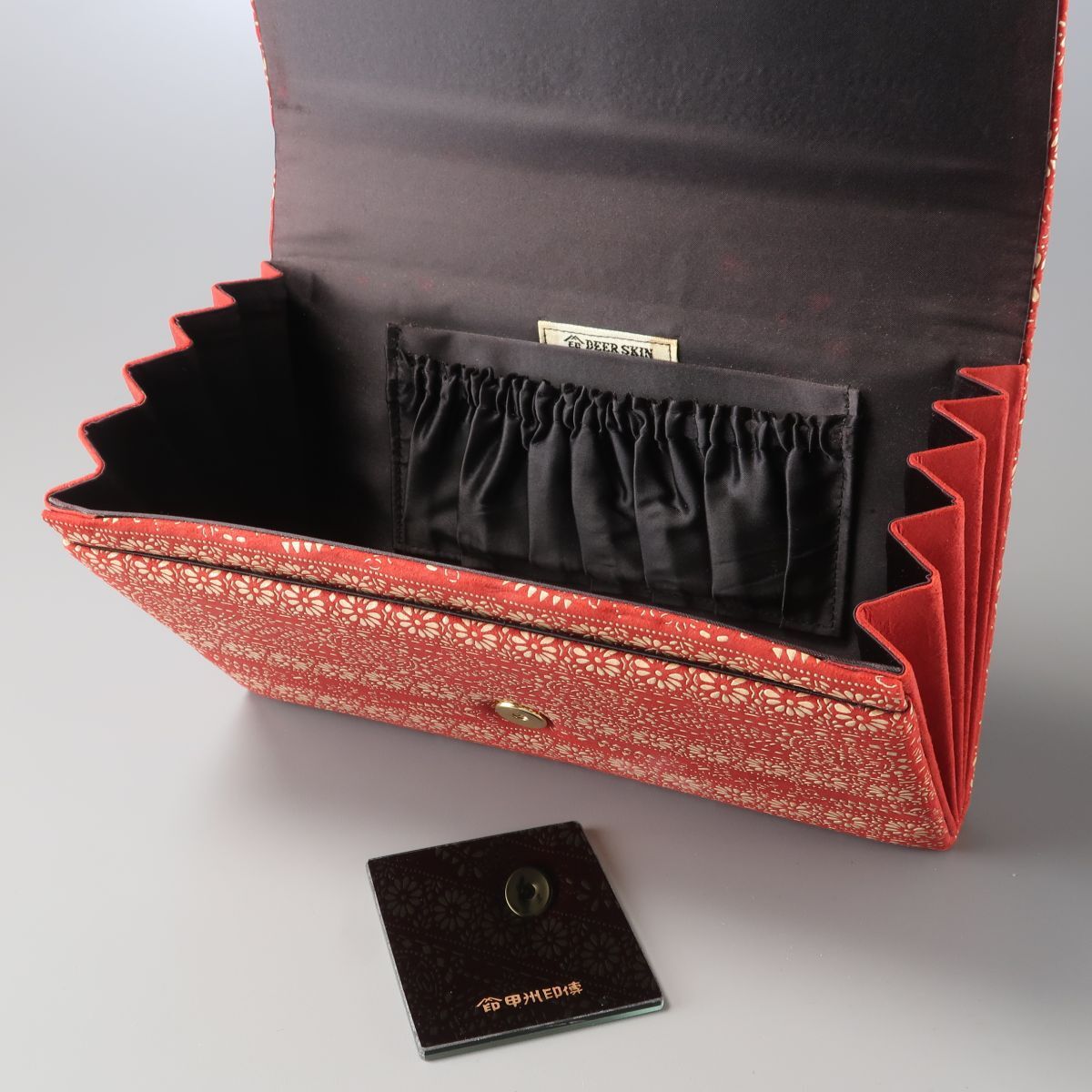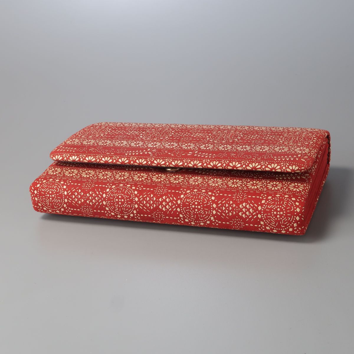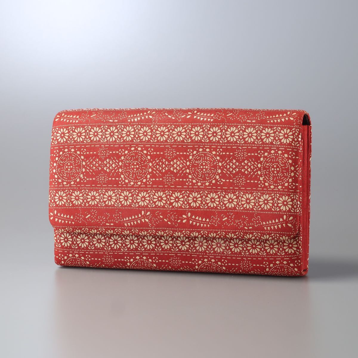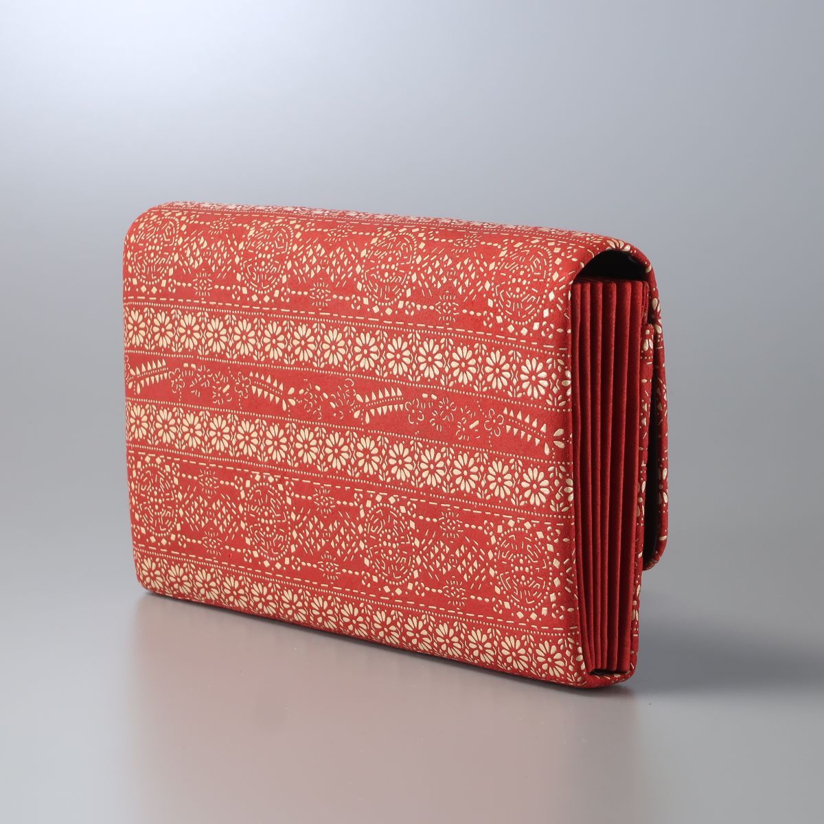 | MI2828▲印伝屋 印傳屋 インデンヤ 鹿革 白漆 花柄 レザー クラッチバッグ ハンドバッグ パーティバッグ フラップ 鞄 レッド×ベージュ系 | |||