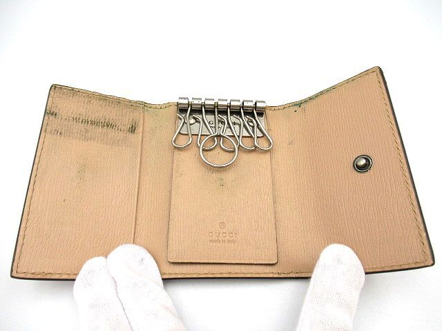 | ◇GUCCI◇グッチ◇ ブルームス レザー 6連キーケース 花柄 フラワー ベージュ系 シルバー金具 410118・525040 中古 レディース 管理番号:19998/S1 *付属品* 無し ※画像に無いものはお付けしません。 *サイズ(約)* ・縦 9.3cm×横 6cm×マチ 2cm ※素人採寸の為、誤差有。 【状態】 店舗買取品/保管品/中古になります。 角擦れ・汚れ・キズ・黒ずみ・色移り・変色・ 青錆跡・型崩れ・金具の擦れ傷やくすみ・ コバのひび割れ・その他ダメージがあります。 ※ダメージが多く、使用感が感じられるお品物です。 詳しい状態は写真でご確認下さい。 画像に写りきらないダメージもあります。 ※商品の状態の説明はあくまで出品者の主観に基づいた説明です。 ※店舗保管品です。 ※新品の様な完璧な状態では御座いません。 ※ご理解頂ける方のご入札をお願い致します。 ご入札前に必ず全文をお読みになり、 お客様が十分にご納得された上でのご入札、 ノークレーム・ノーリターンでお願い致します。 入札の取消は行っておりませんのでご注意下さい。 (ご入札された時点で同意頂いたものとします) ※画像のものがすべてになります。 ※店舗保管品の為、多少のスレキズ等ある場合が御座います。 ※専門知識が無いため質問にお答えできない場合が御座います。 ※素人検品・撮影の為写真に写り切らない汚れ・キズがある場合が御座います。 ※新品の様な100%完璧な状態では御座いません。 ※念入りに検品しておりますが見落としがある場合が御座います。 ※神経質な方、完璧をお求めの方は入札をお控え下さい。 ※御理解頂ける方のご入札をお願い致します。 ※当店はまとめてお取引には対応致しません。 全て単品でのお取引となります。 ※同梱は行っておりません。 ※商品管理上、取り置きは致しませんのでご了承下さい。 | |||