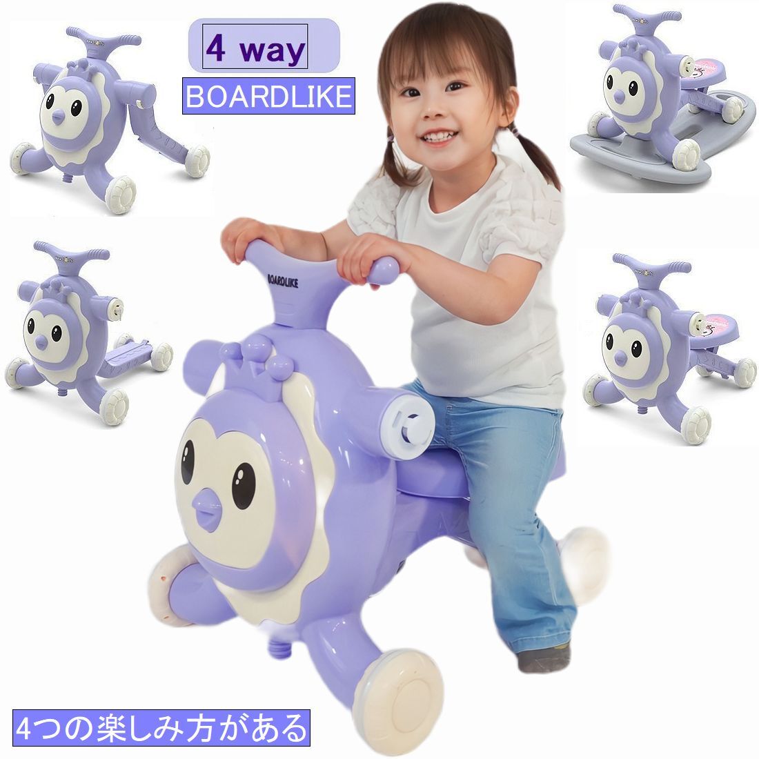 キッズ専門店、子供の成長に必要な玩具■紫■4WAY■5台限り■ベビーウォーカー■ボードライク■キックボード■ロッキングチェアー■木馬