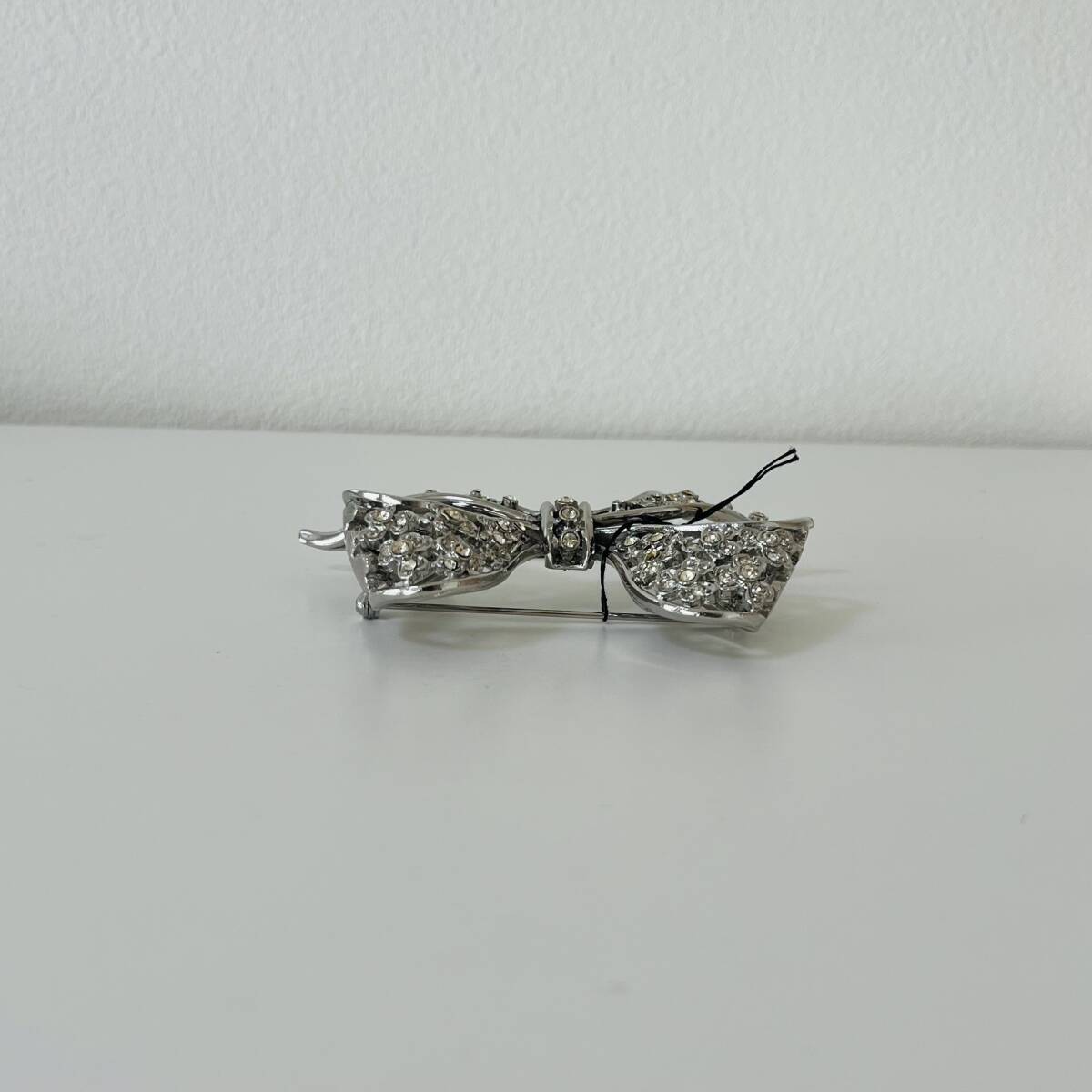 596③VANITY N.Y.タグ付き ブローチ アンティーク ビンテージ アクセサリー 未使用保管品!シルバーカラー ラインストーン キラキラ リボン