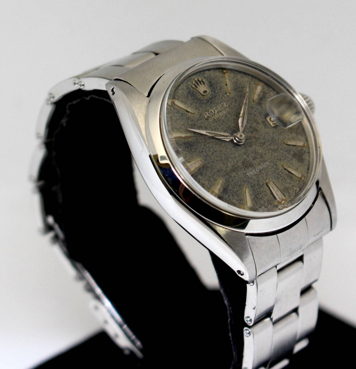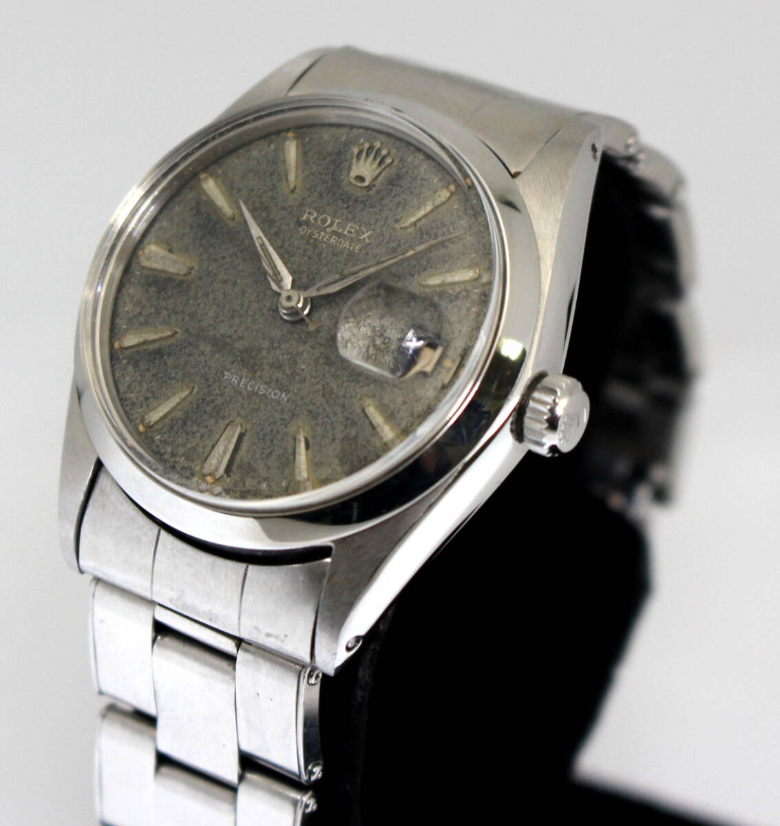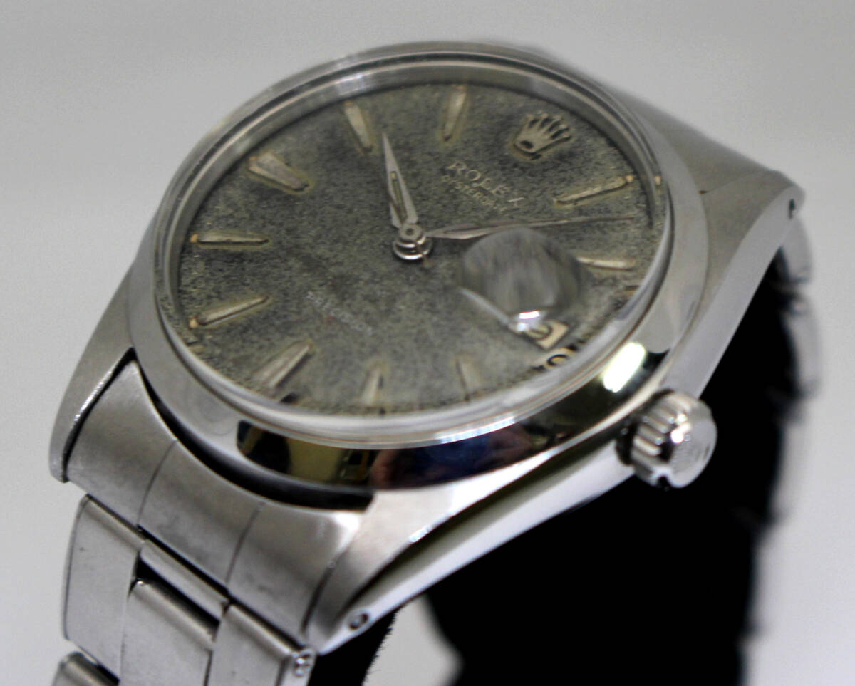 ROLEX6694オイスターデイトです。 オリジナルのトロピカルダイアルがヴィンテージ感を高めます。 よくこの状態でダイアルが残っていたと感激しました。 アメリカンブレスが装着され、希少性を高めています。 味のある本物の【The Vintage ROLEX】はいかがですか! 年々状態のいい個体が減ってきています。お探しの方はこの機会にご検討ください! ROLEXヴィンテージを1本とお思いの方、ぜひご検討ください。