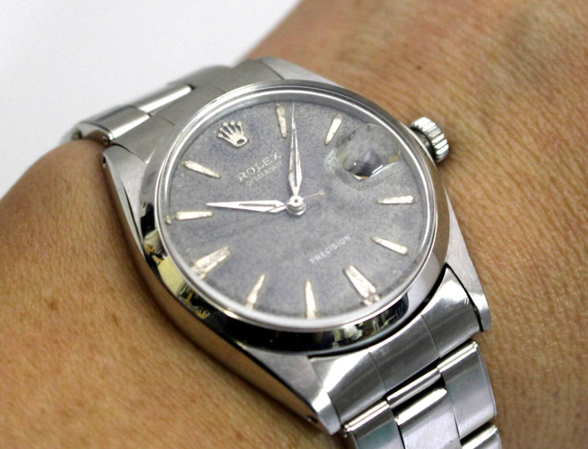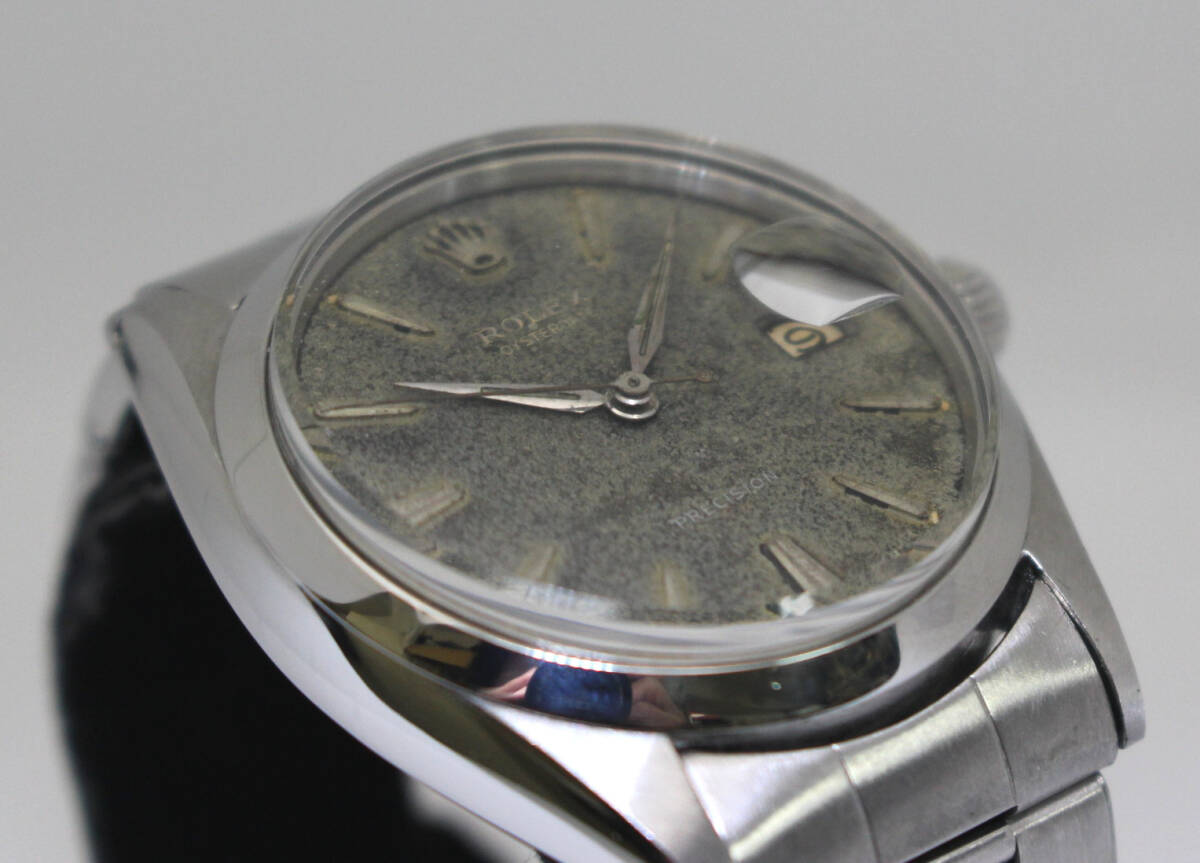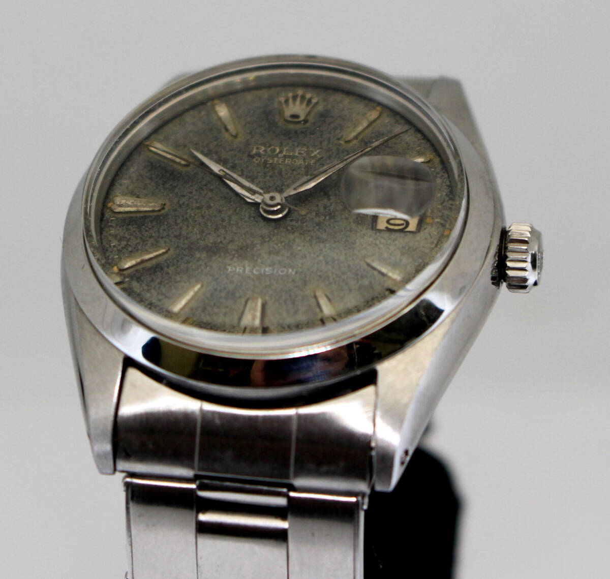 ROLEX6694オイスターデイトです。 オリジナルのトロピカルダイアルがヴィンテージ感を高めます。 よくこの状態でダイアルが残っていたと感激しました。 アメリカンブレスが装着され、希少性を高めています。 味のある本物の【The Vintage ROLEX】はいかがですか! 年々状態のいい個体が減ってきています。お探しの方はこの機会にご検討ください! ROLEXヴィンテージを1本とお思いの方、ぜひご検討ください。