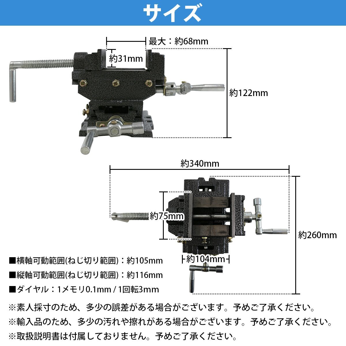 2軸 スライド クロス テーブル バイス 開口 65mm ボール盤 フライス盤 旋盤 卓上 万力 クランプ 固定 作業 金属加工 穴あけ