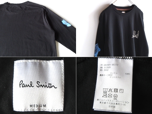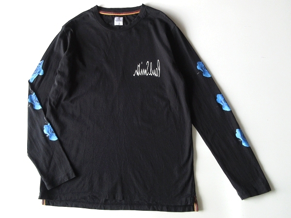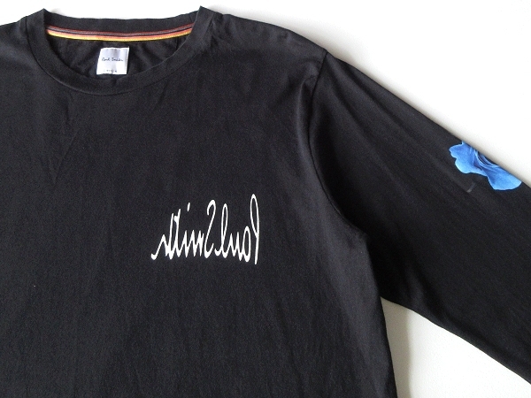 Paul Smith ポールスミス 2021SS Monarch Rose モナークローズ 青薔薇 反転ロゴプリント ロングスリーブTシャツ カットソー M 黒 ブラック