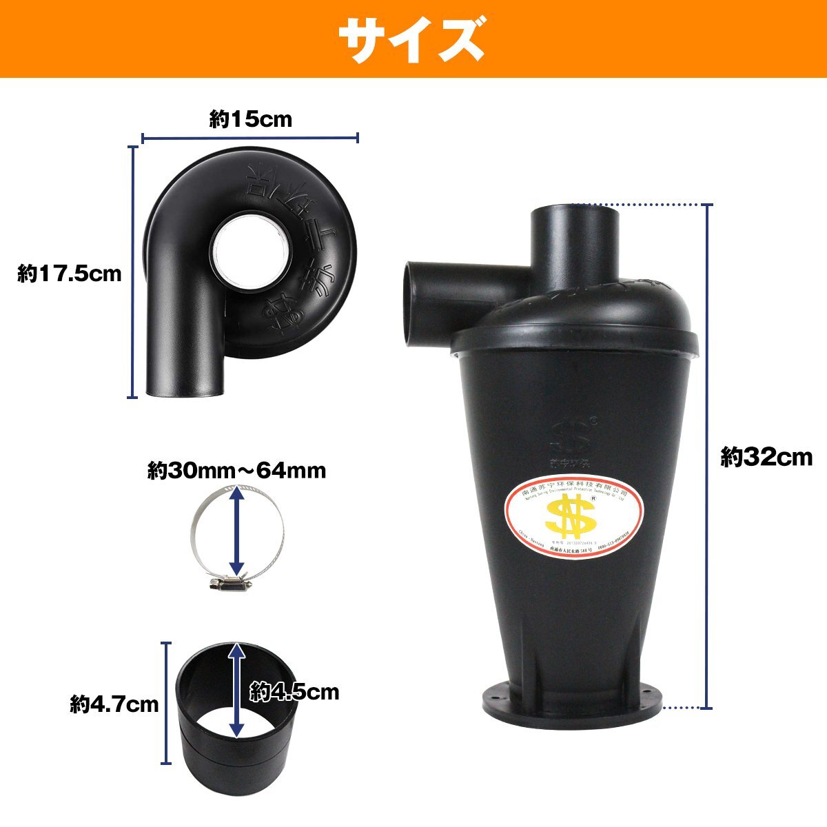 集塵機 サイクロン ブラック アタッチメント付属 自作用 ダスト 木工作業道具 DIY パーツ 吸塵 木くず