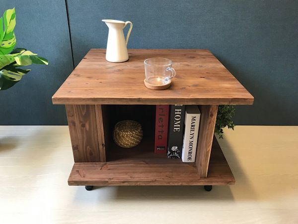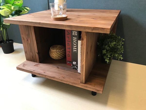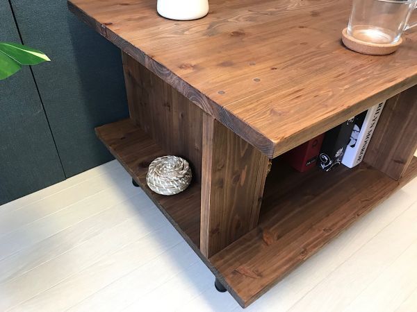 ◎荒々しい木目が特徴の、杉材を使用した収納たっぷりスクエアーテーブルです。