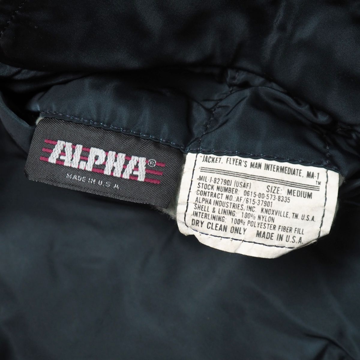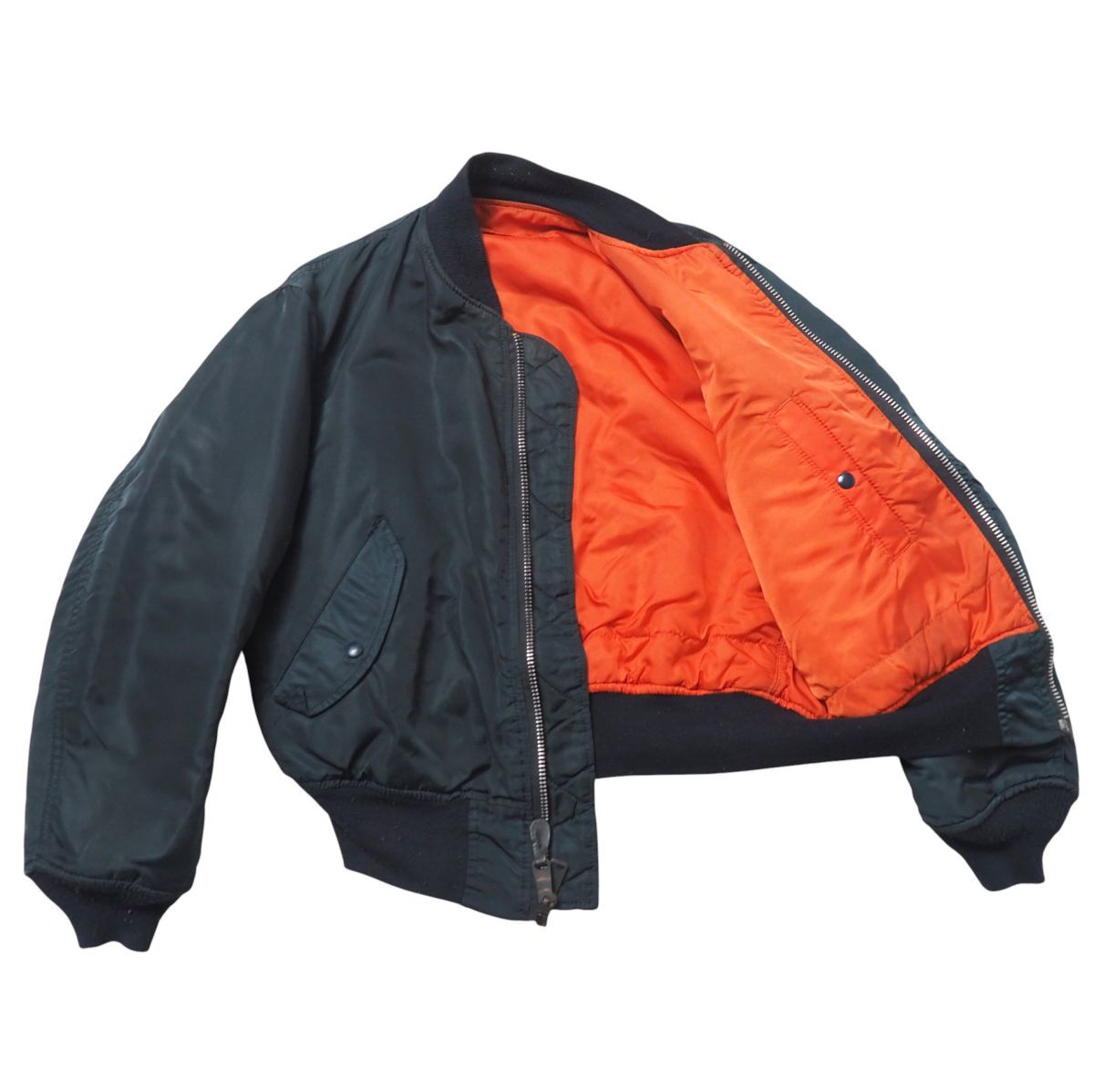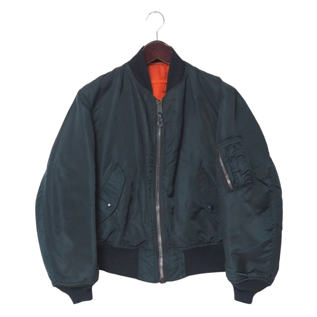 | TJ6008▽USA製 80sヴィンテージ*ALPHA/アルファ*メンズMEDIUM*MA-1*フライトジャケット*ジップアップブルゾン*ネイビー系 | |||