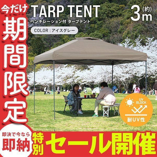 | 強い日差しでもこの3m×3mのタープテントは快適な日陰を作ってくれます! |
