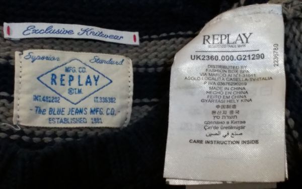 REPLAY リプレイ セーター SIZE:L 紺 グレー 送料1000円~