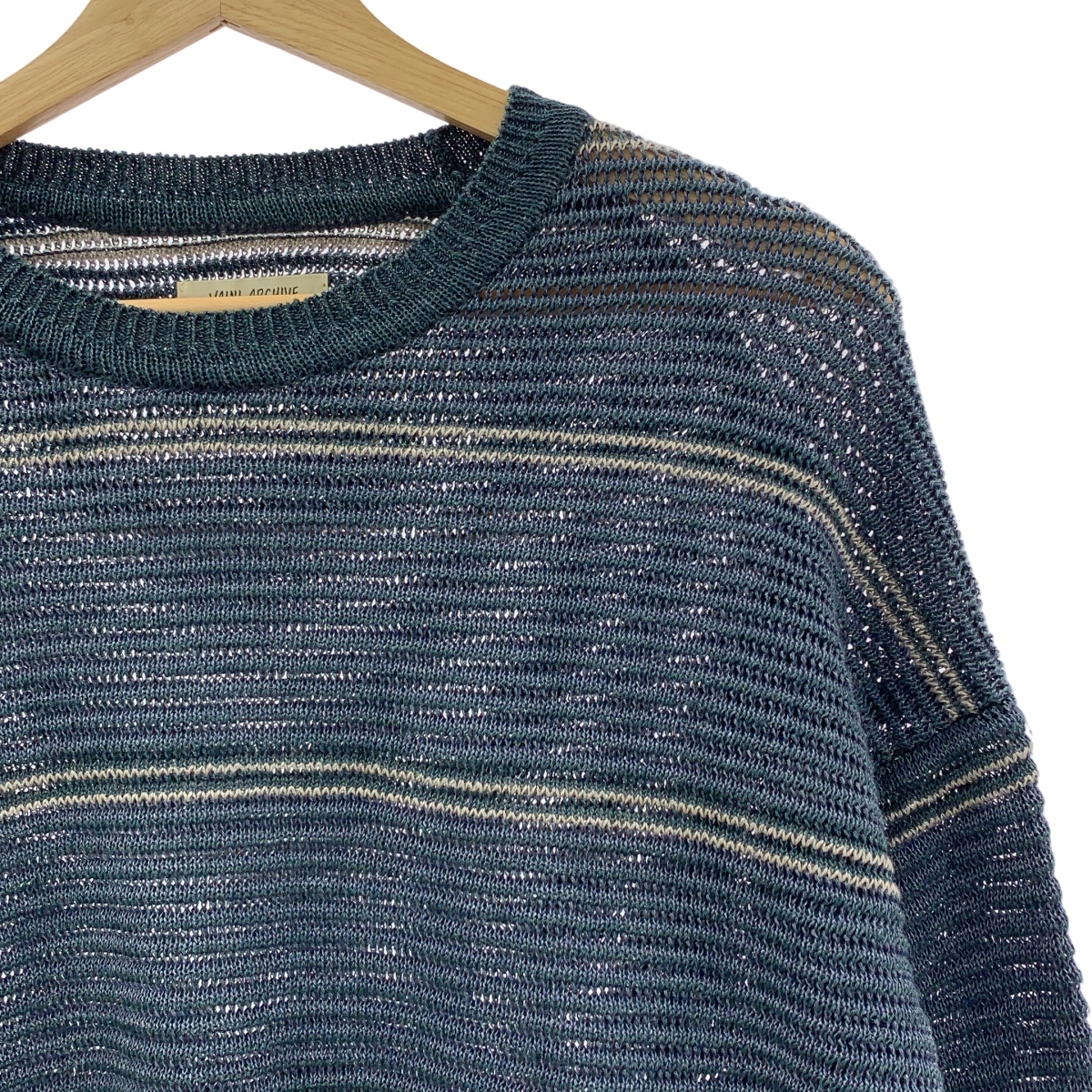 Vainl Archive / ヴァイナルアーカイブ | リネン ボーダー メッシュ ニット | L | グリーン系 | メンズ