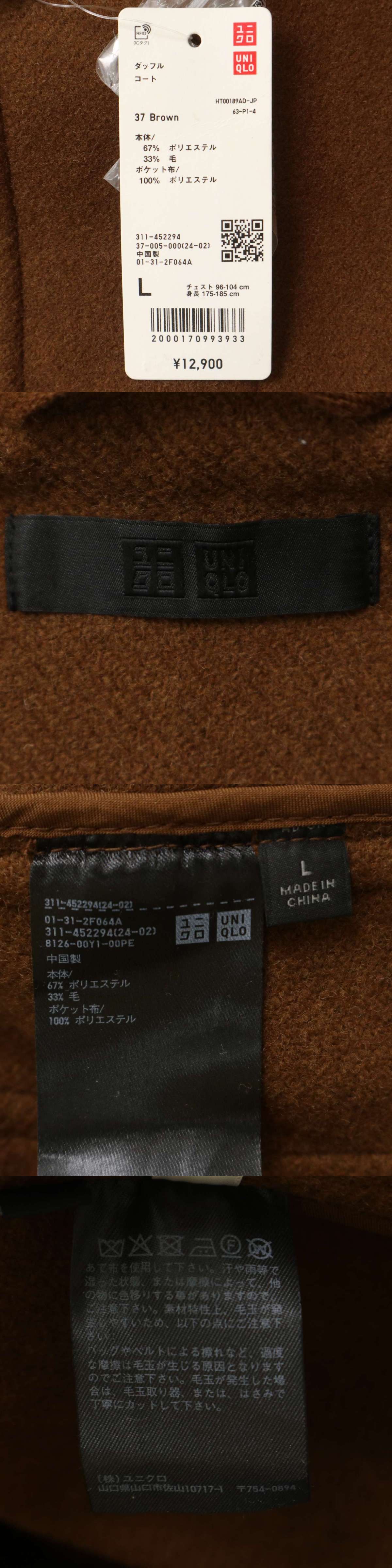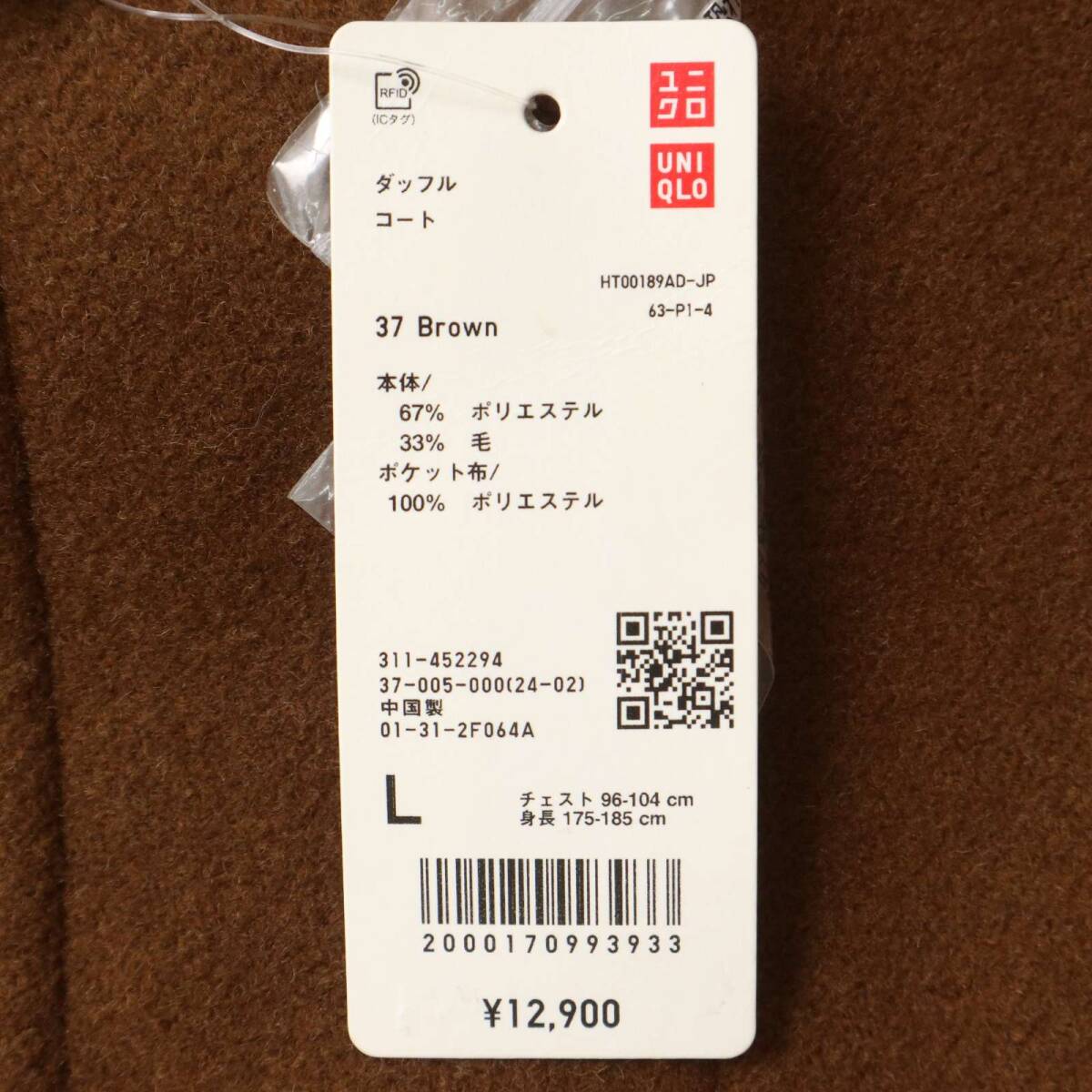 【22AW 新品】 UNIQLO ユニクロ 秋冬 ウール ブレンド ダッフル コート Sz.L メンズ 未使用