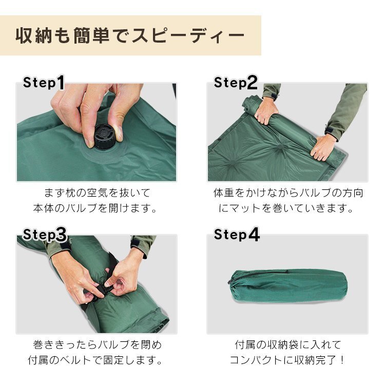 | インフレーターマット ただのエアーマットではありません!! マット上部のバルブを開けば、それだけでマットが自動で膨らむので簡単に設置することができます。 厚さは3cmもあるため快適性は抜群で軽量です。枕もついています♪ 連結可能だから、2点以上購入がオススメ! 収納袋、収納バンドがついてくるから、簡単にコンパクトできます。 アウトドア・キャンプでの使用にはもちろん、ツーリング、車中宿泊などさまざまなシーンでご利用いただけます。 軽量・コンパクトなので地震や災害時の防災用品としてもオススメです |