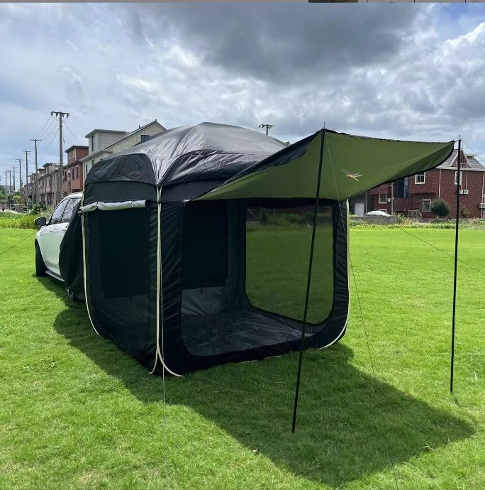 リアハッチテント(バックドアテント)◆ポップアップ式◆リアゲートテント◆カーサイドタープ◆高さ2m×幅2m×奥行2m◆車中泊 ▲黒