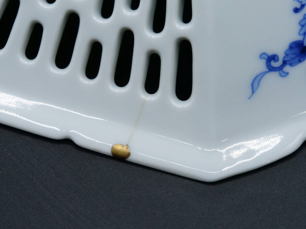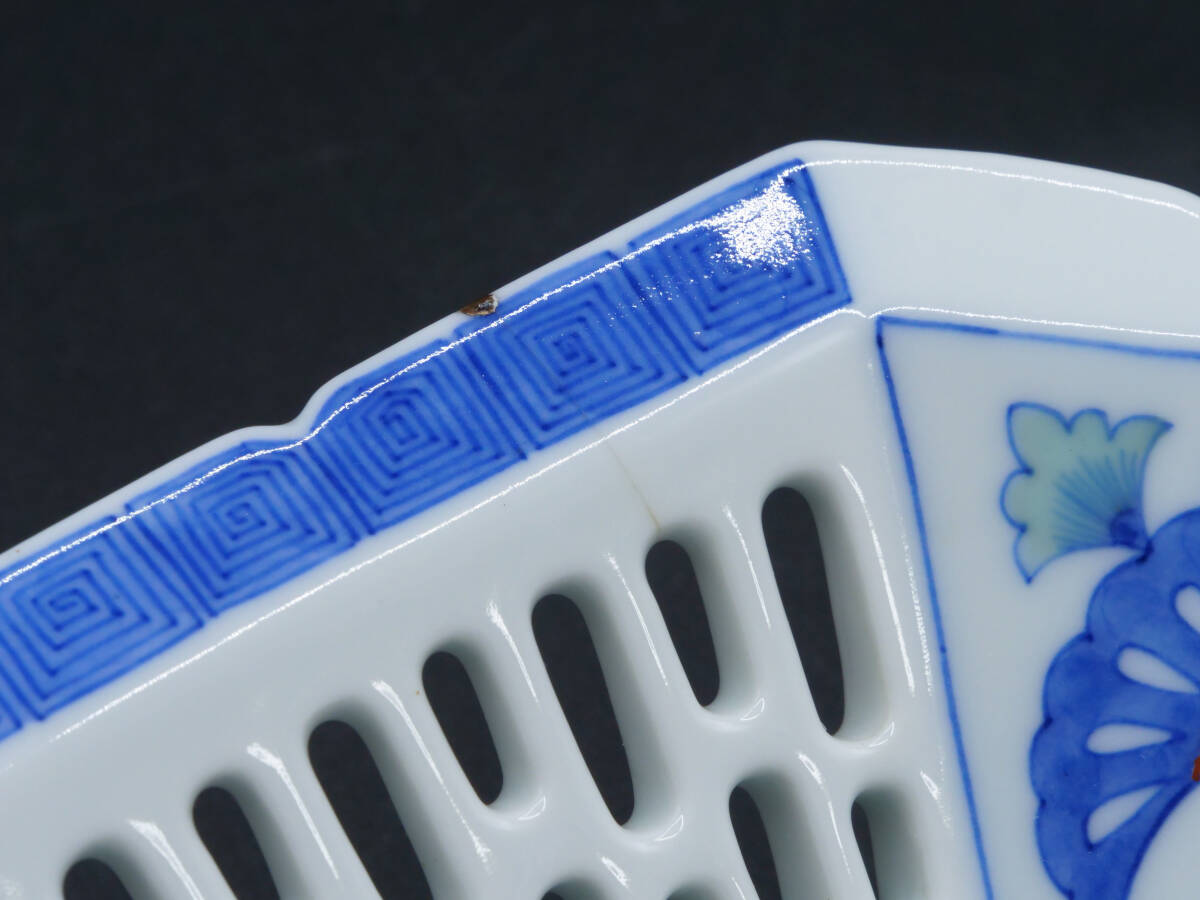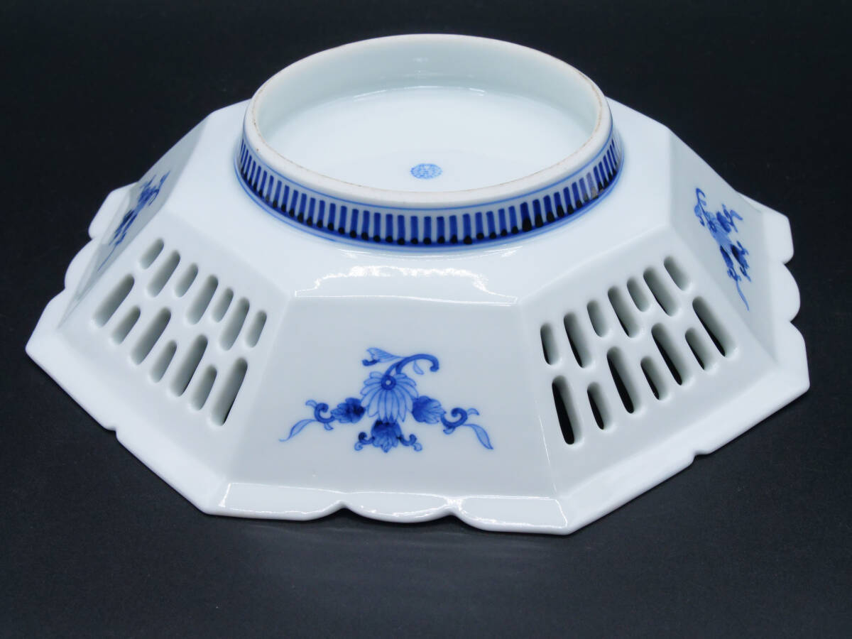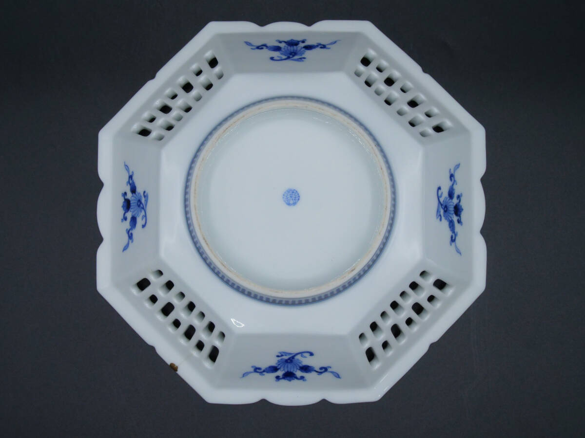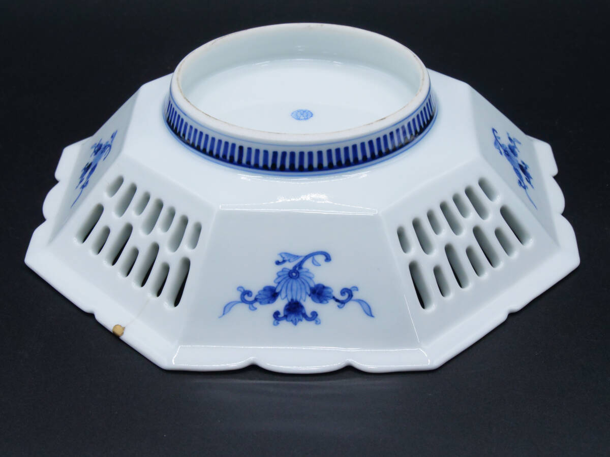 鍋島御庭焼 色鍋島 福良雀 膨雀 龍 透かし 八角 菓子鉢 盛器 櫛高台 ※金継ぎ 金直しあり 市川光春