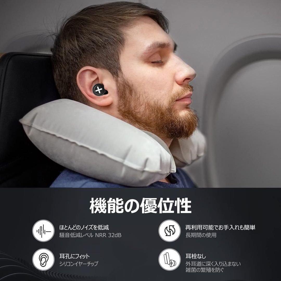 耳栓 睡眠用 シリコン 遮音 防音 ノイズキャンセリング イヤープラグ 快眠 安眠グッズ 騒音対策 32dB低減 水洗い可能 繰り返し使用 左右に通用する男女兼用 耳栓1ペア+収納ケース1個(黒い)
