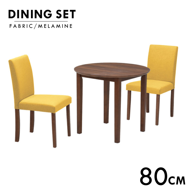 ダイニングテーブルセット 丸 2人用 幅80cm 3点 ファブリック mac80-3-beka342wnye メラミン化粧板 ウォールナット色 6s-2k-179/160 tn