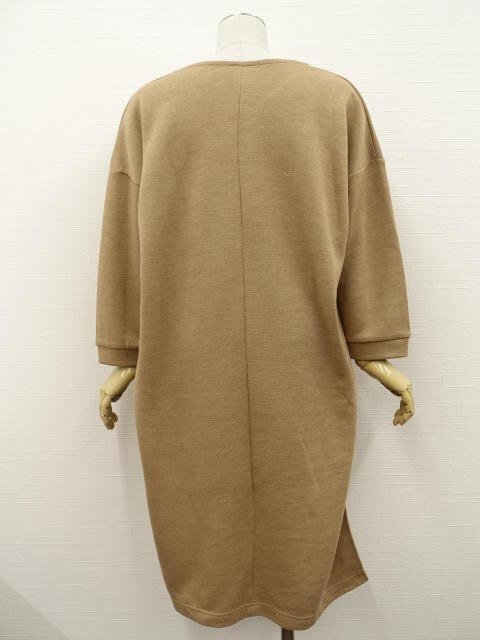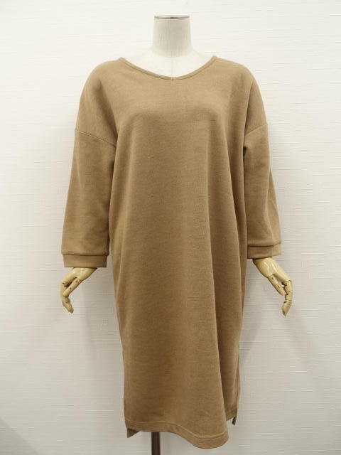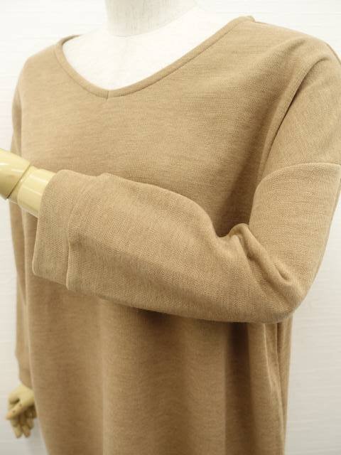 洗える ロング丈 ドロップショルダー 長袖 Vネック ニットワンピース M キャメルブラウン杢