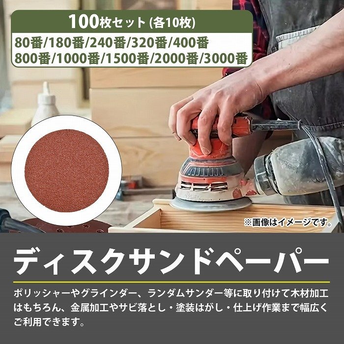 【新品即納】75mm 粗目 細目 10種 100枚セット 80/180/240/320/400/800/1000/1500/2000/3000 ディスクペーパー マジック式 サンドペーパー