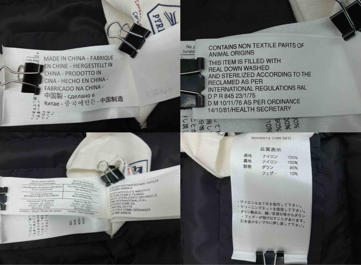 | 表地、裏地 ナイロン100%・詰物 ダウン90%.フェザー10% |